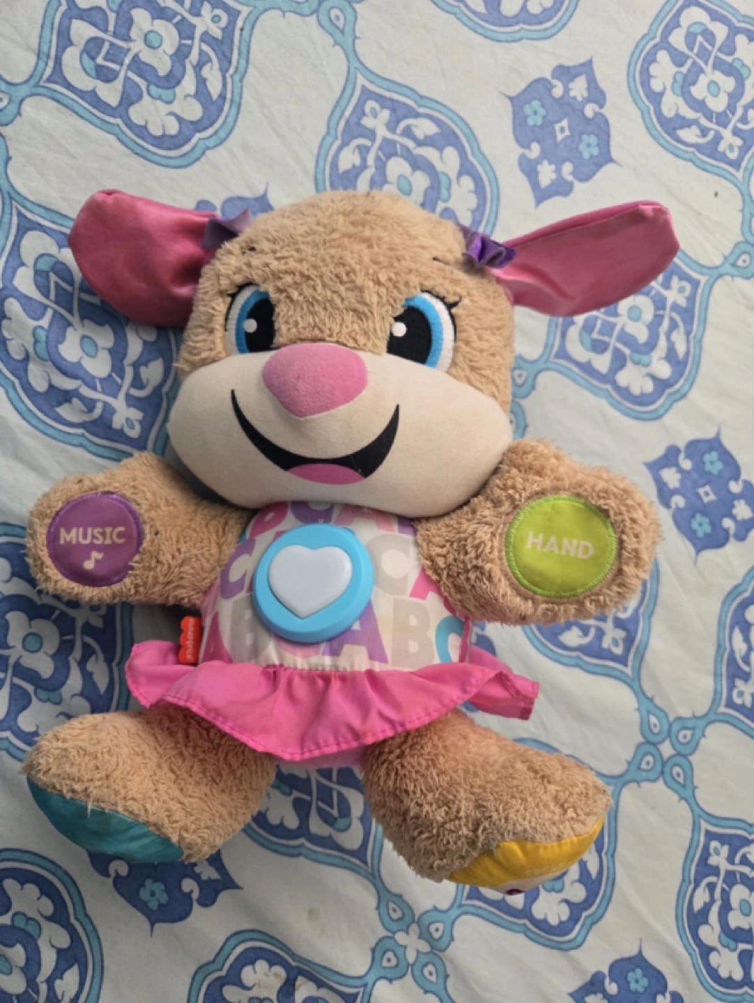 Selling a gently used Fisher-Price Laugh & Learn Love to Play Sis plush toy! It has interactive buttons for music and learning about body parts. Perfect for little ones!
