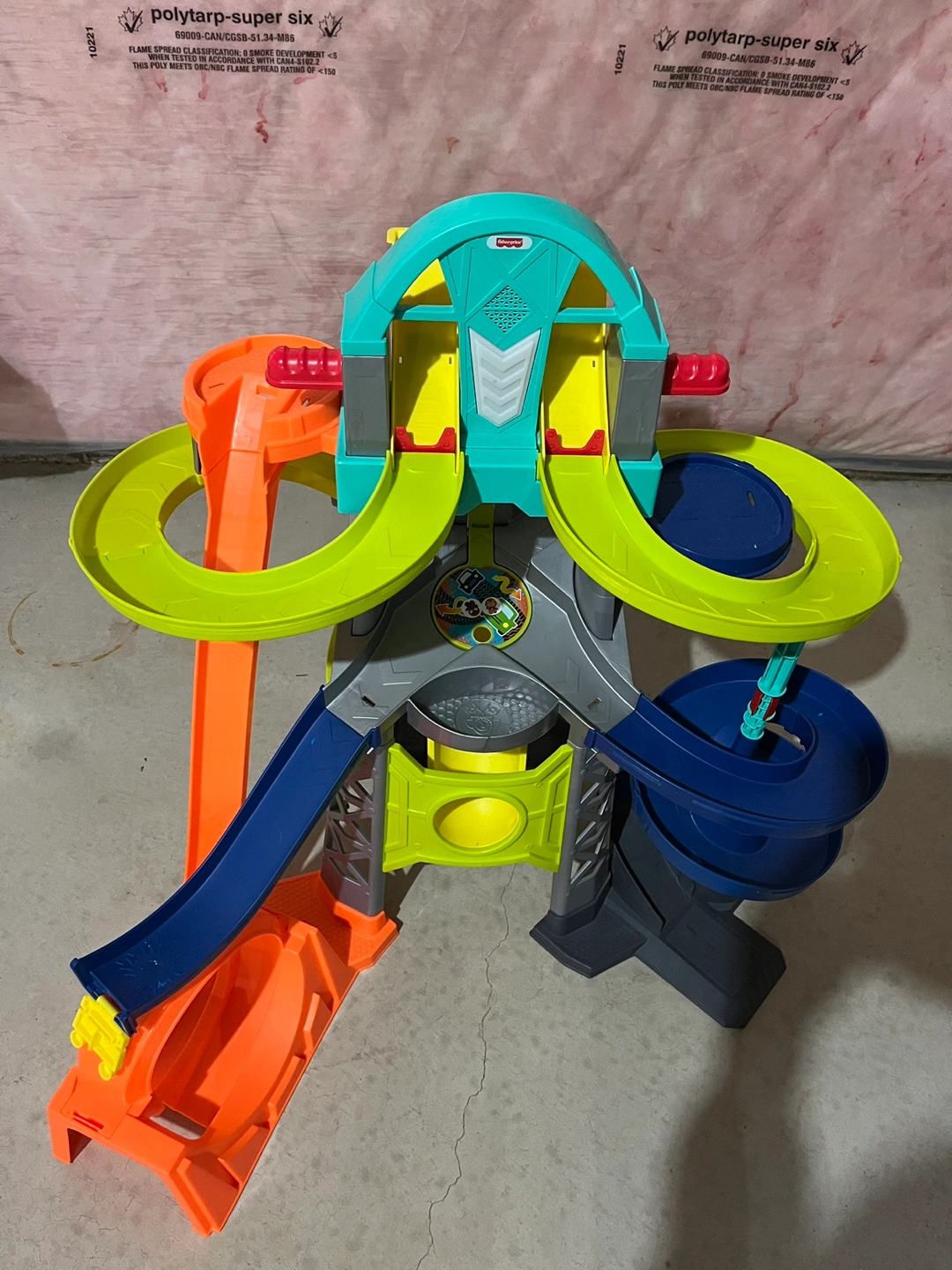 Fisher-Price Little People Toddler Race Track Playset with Lights Sounds and Hot Wheels Racing Loop. Can be used with any small cars. Sells on Amazon for 170$ plus tax. 7000 plus reviews. Great for kids from 1.5 years to 5 years Take it for 120$ almost like new. Lights and sounds all work- comes with batteries as well. No cars.