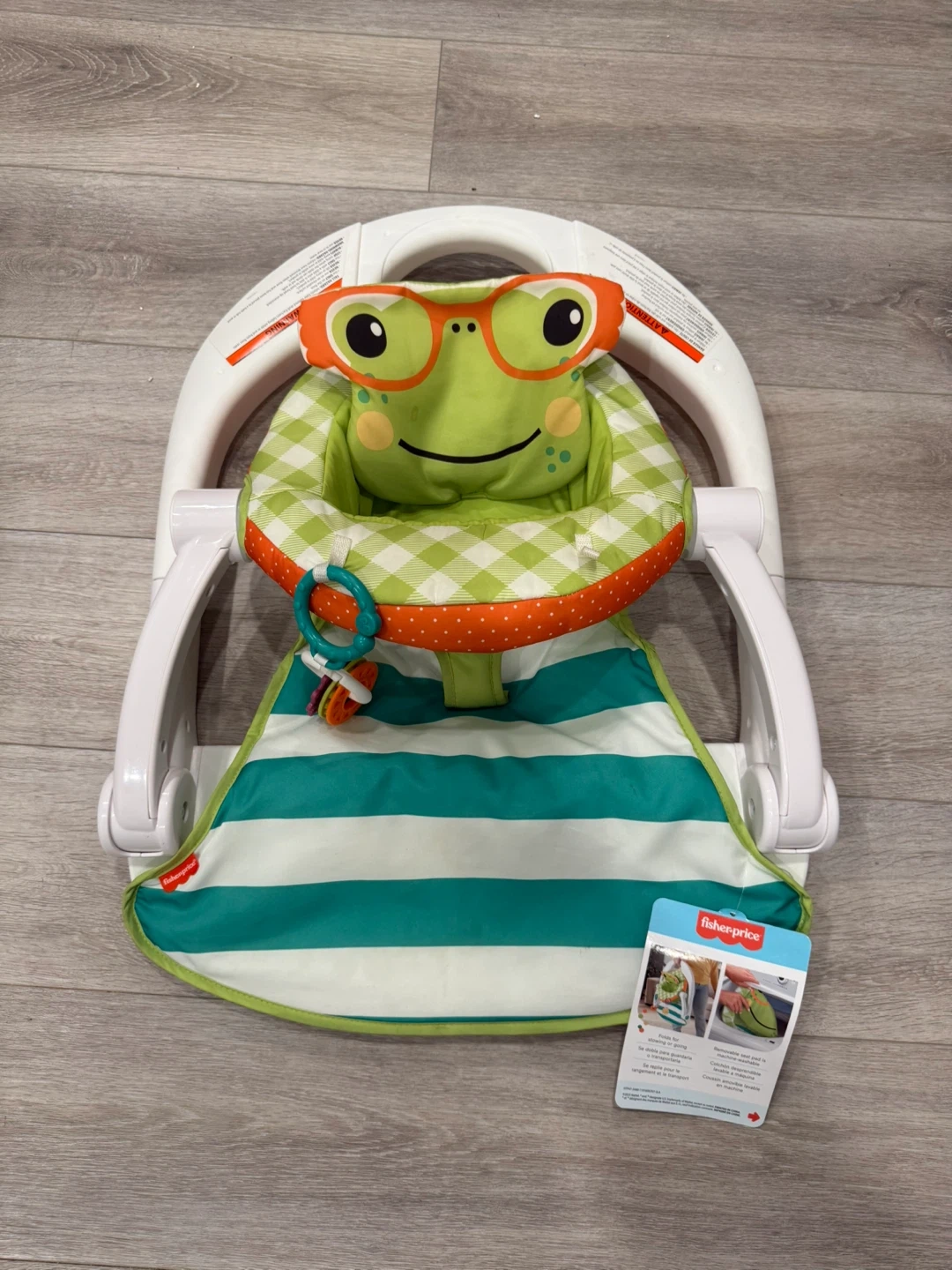 This Fisher-Price Sit-Me-Up Floor Seat is perfect for helping your little one sit up and play. It's in great condition and ready for a new home. The seat features a cute frog design and is designed to support babies as they learn to sit. It also folds for easy storage and transport. Removable seat pad is machine washable OBO