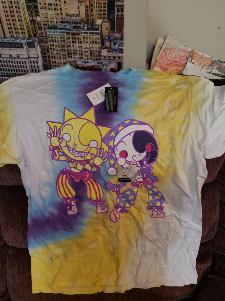 Selling two Five Nights at Freddy's Funko collectible action figures: Tie-Dye Freddy and Grimm Foxy. Also included is a Five Nights at Freddy's tie-dye shirt in size Large. All items are in great condition! tshirt 10.00 pops 15.00 each