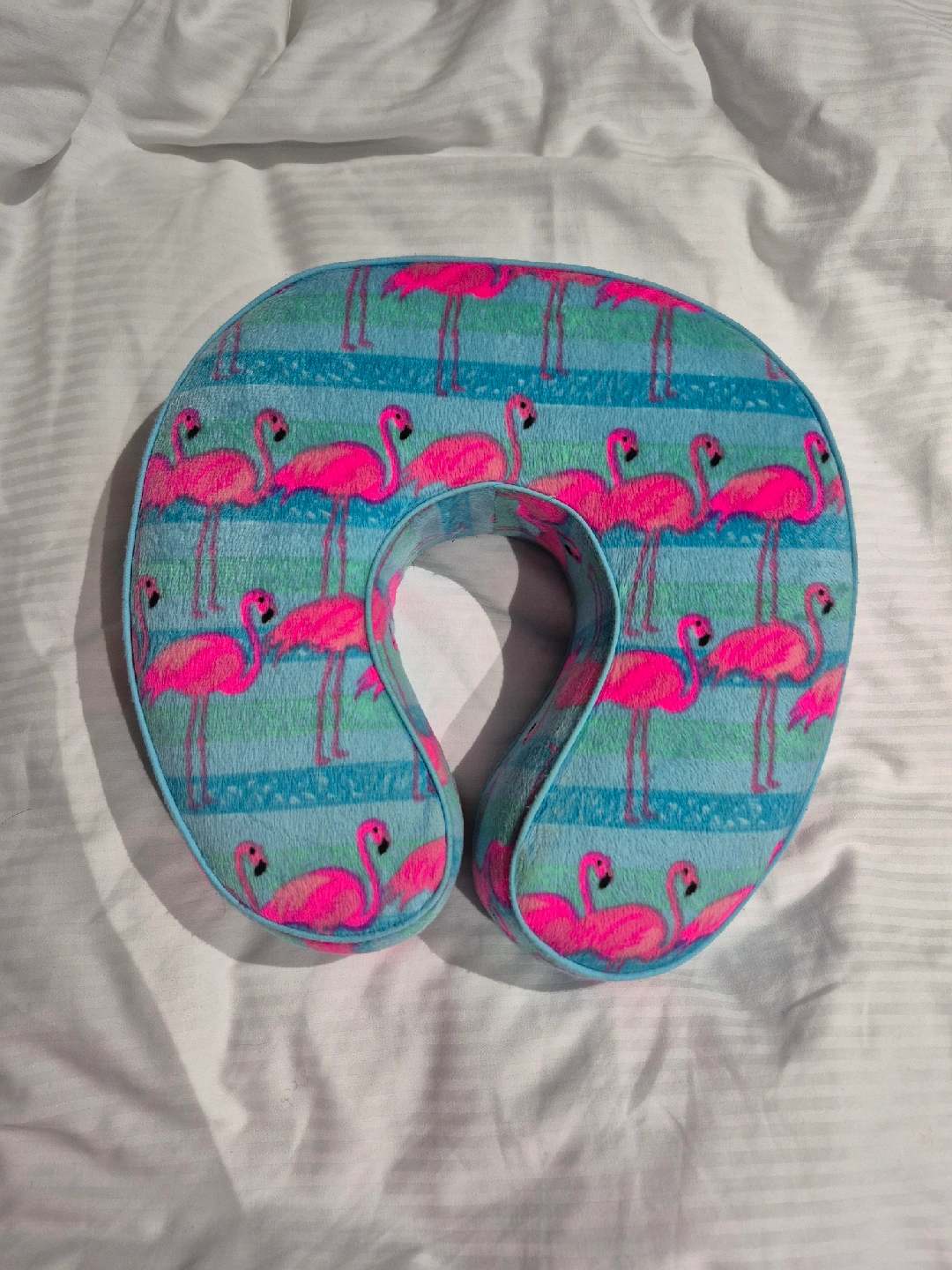 REDUCED!! $10 to NOW $5 Cute travel neck pillow with a fun flamingo print! It's in great condition & perfect for adding a bit of fun to your travels. The pillow is soft & comfortable, making it ideal for long flights or car rides. Only selling because when I was recently in London England, I bought myself a matching traveling set (includes travel throw, eye mask & neck pillow) From a cat friendly & smoke free home/ Cross posted.