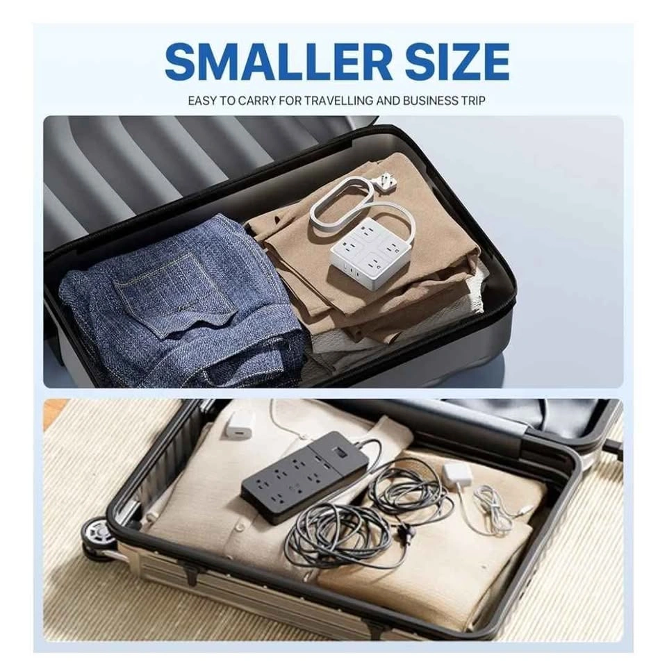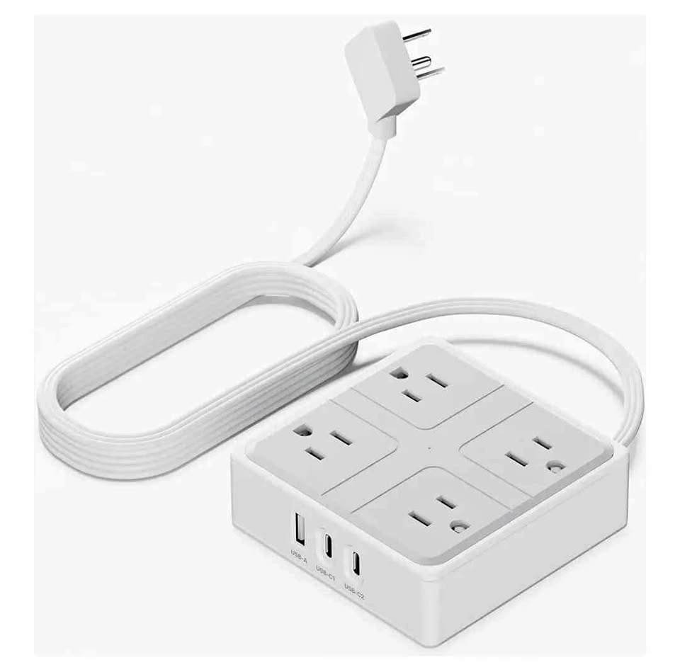 Flat Plug Power Bar with USB C, 4FT Ultra-Thin Extension Cord, 2 Outlet with 3 USB Ports (2 USB C), No Surge Protection for Cruise Ship, Travel Essentials, Dorm Room (4 Outlets White) This flat power strip 4ft could turn 1 socket into 2 AC outlets and 3 USB ports, can charge 5 devices simultaneously without blocking, keep your desktop organized; You can use it in any indoor place such as home, office and dorm room. With only 0.62 in ultra thin flat head design, flat wall plug can easily fit in tight spots and hide behind sofa, bed, nightstand or other furniture, sitting flush against the wall; 45° right angle design create an extra space for other plug below without blocking. The small cruise power strip with NO surge protection, it's absolutely a must have Home and Cruise Ship accessories as Cruise lines require that power strips DO NOT have Surge Protection. Compact and lightweight, easy to carry and best for travel. Added extra 2 USB C ports for your devices, the USB C port can charge up to 5V/4A. USB-A ports can charge up to 5V/3A Max, all USB Ports Output is 5V/3.1A, 20W max which is 30% faster than other usb c charging station. With smart charging technology, it can auto-detects your devices and can reach faster charging efficiency, perfectly fit for your iphone, ipad, tablet etc.