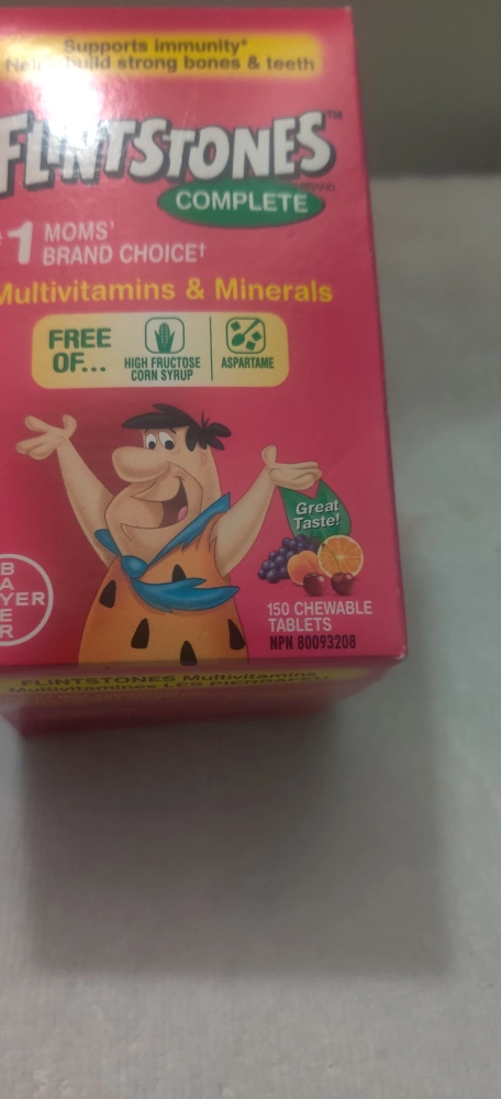 Flintstones Complete chewable multivitamins for kids. Contains 150 tablets. Expiry date is 2027 February