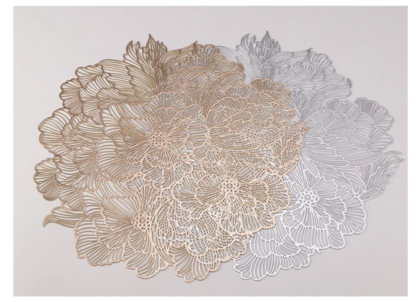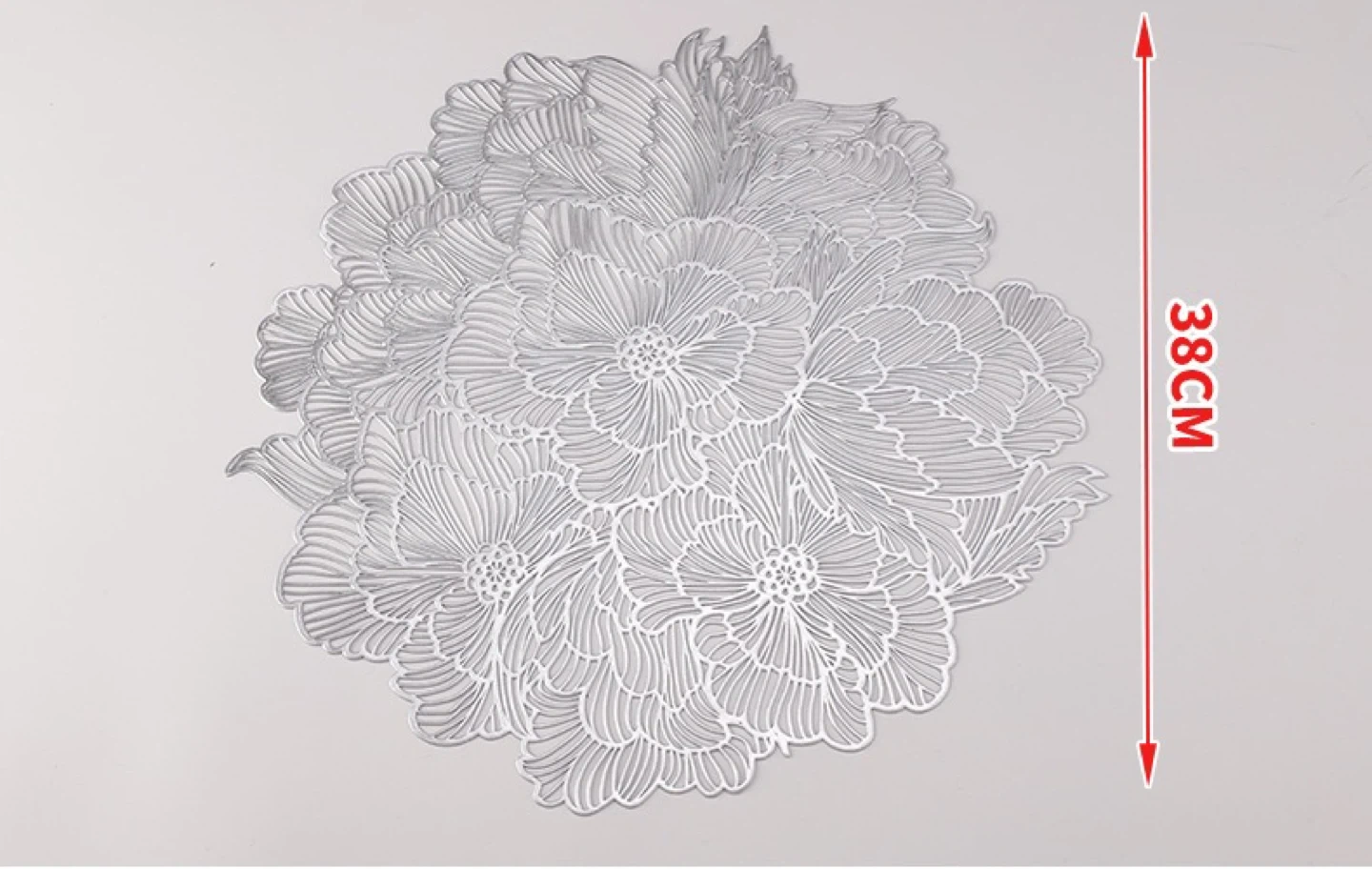 Add a touch of elegance to your dining table with these floral cutout placemats! Available in gold and silver, they measure approximately 38cm in diameter. Perfect for special occasions or everyday use