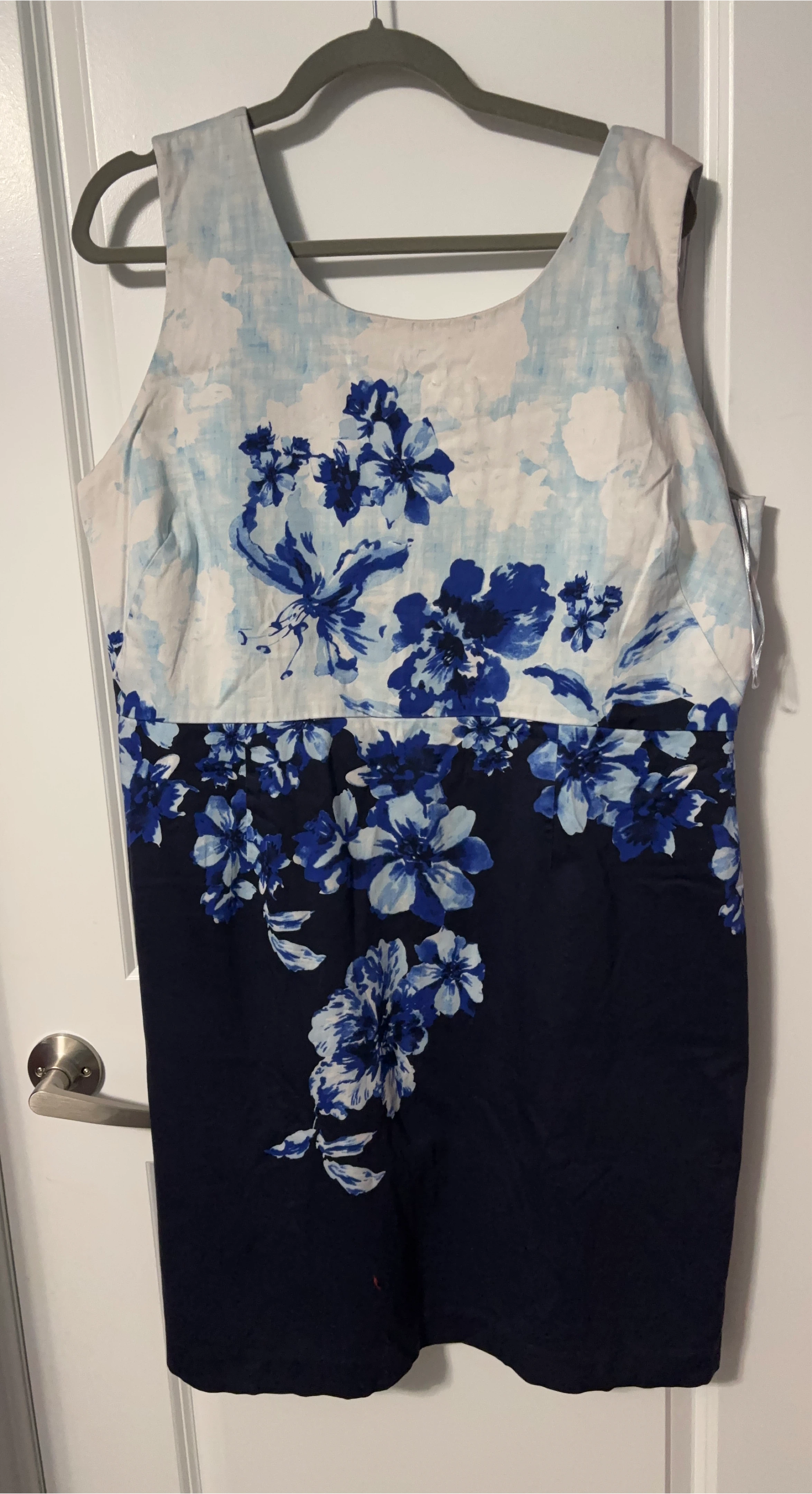Selling a lovely floral dress with a blue and white pattern. It's in great condition and would be perfect for spring or summer! The dress features a sleeveless design and a flattering cut. Feel free to ask any questions!