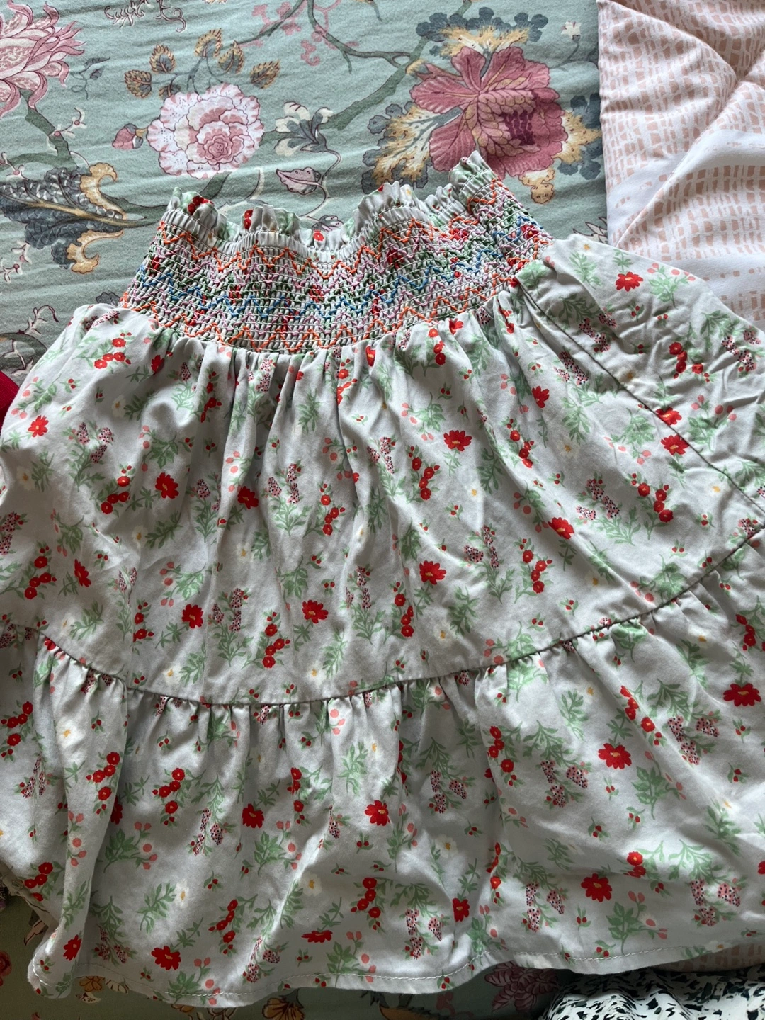 Cute floral skirt with a smocked waistband. It's in great condition and ready for a new home!