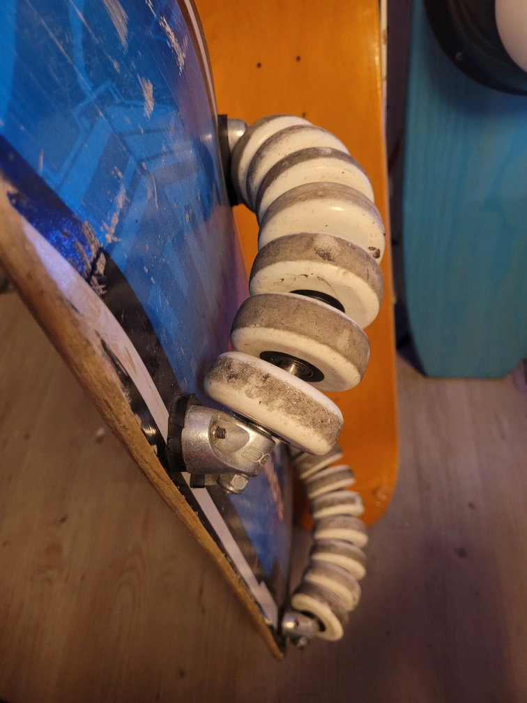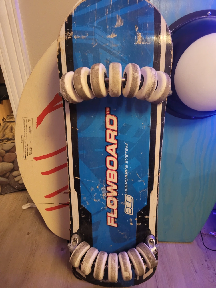 Selling a Flowboard Deepcarve System skateboard. It has a unique wheel configuration for a different riding experience. It shows signs of use, but is still functional for carving and cruising around town