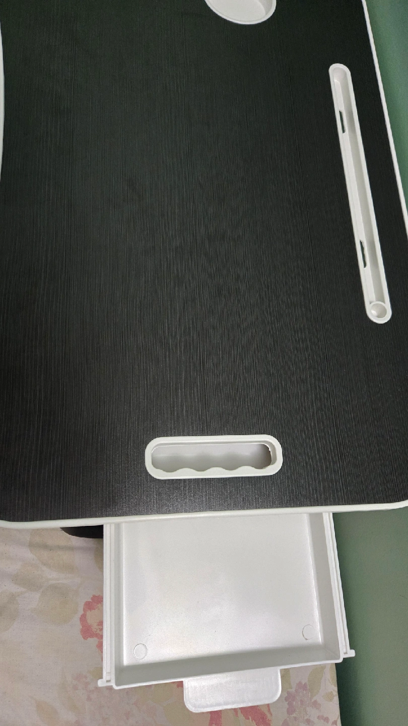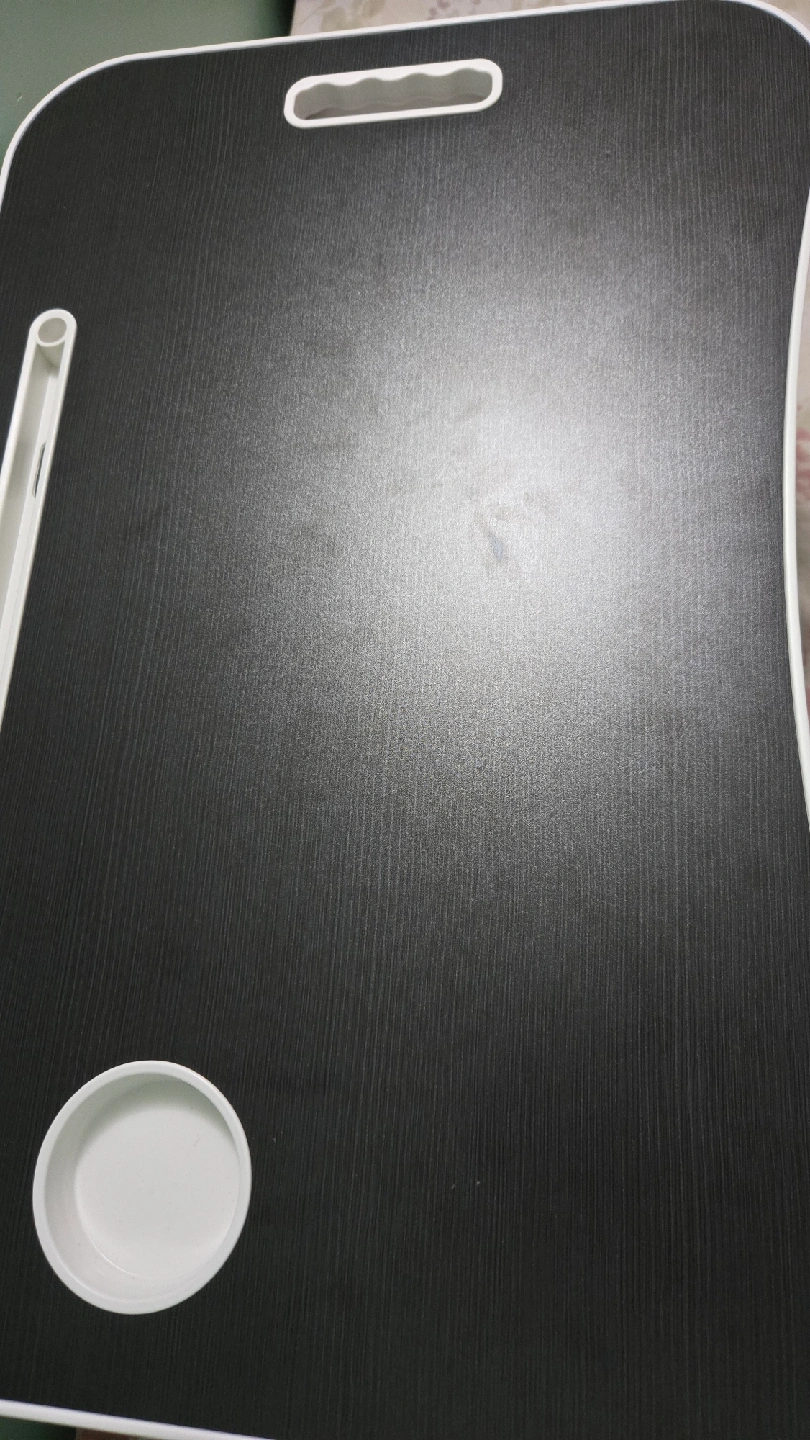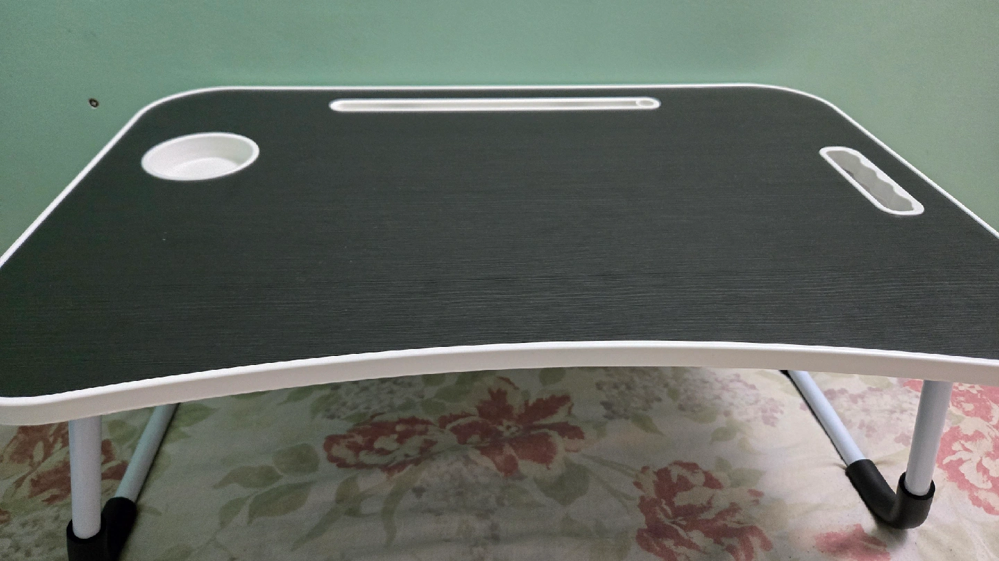 This foldable standing laptop desk, which also doubles as a bed tray, is a convenient and versatile piece for anyone needing a portable workstation. It features a smooth, dark surface, a slot for holding tablets or books, and even a cup holder to keep your beverage secure. The foldable legs make it easy to store when not in use. This particular one is in great shape for all your lounging or working needs and has been barely used. Specifications: * Foldable legs for easy storage * Built-in cup holder * Tablet/book slot * Sturdy construction Looking for a lap desk that's ready to go wherever you do? This little desk is a great choice! Don't miss out—if the ad is up, it's still available!
