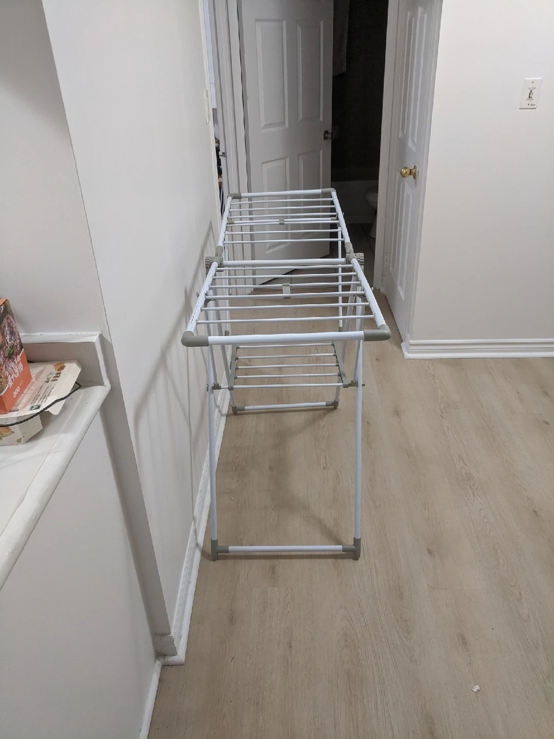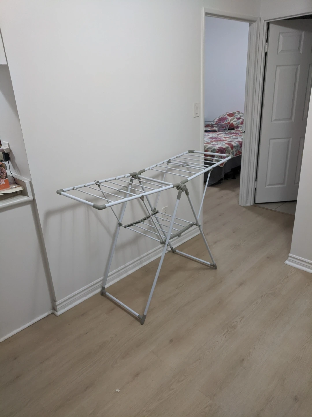 Selling a gently used folding clothes drying rack. It's perfect for small spaces and easy to store when not in use. It's lightweight and in good condition! Pick up at 195 Merton Street Toronto or pick up at subway station Davisvill. And I can deliver it to your house but you need to pay me another $3. thanks.