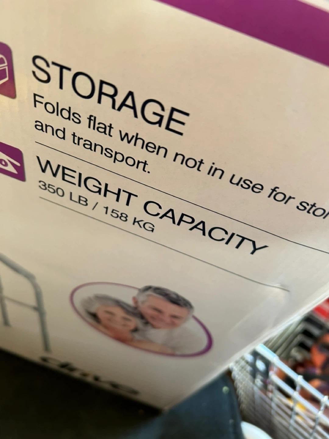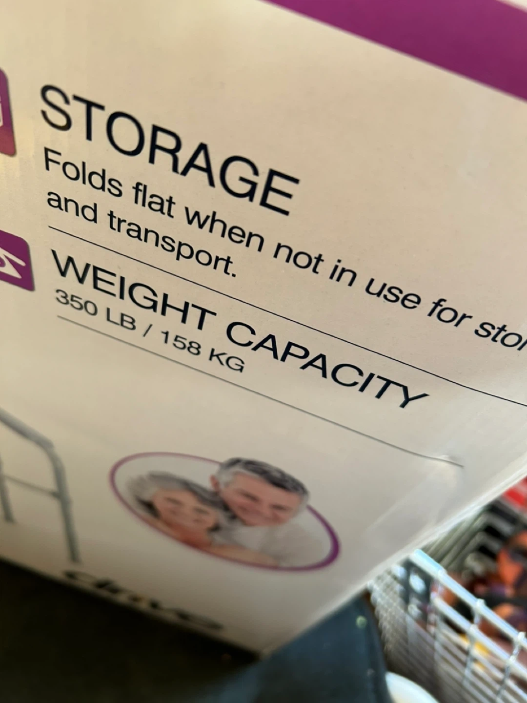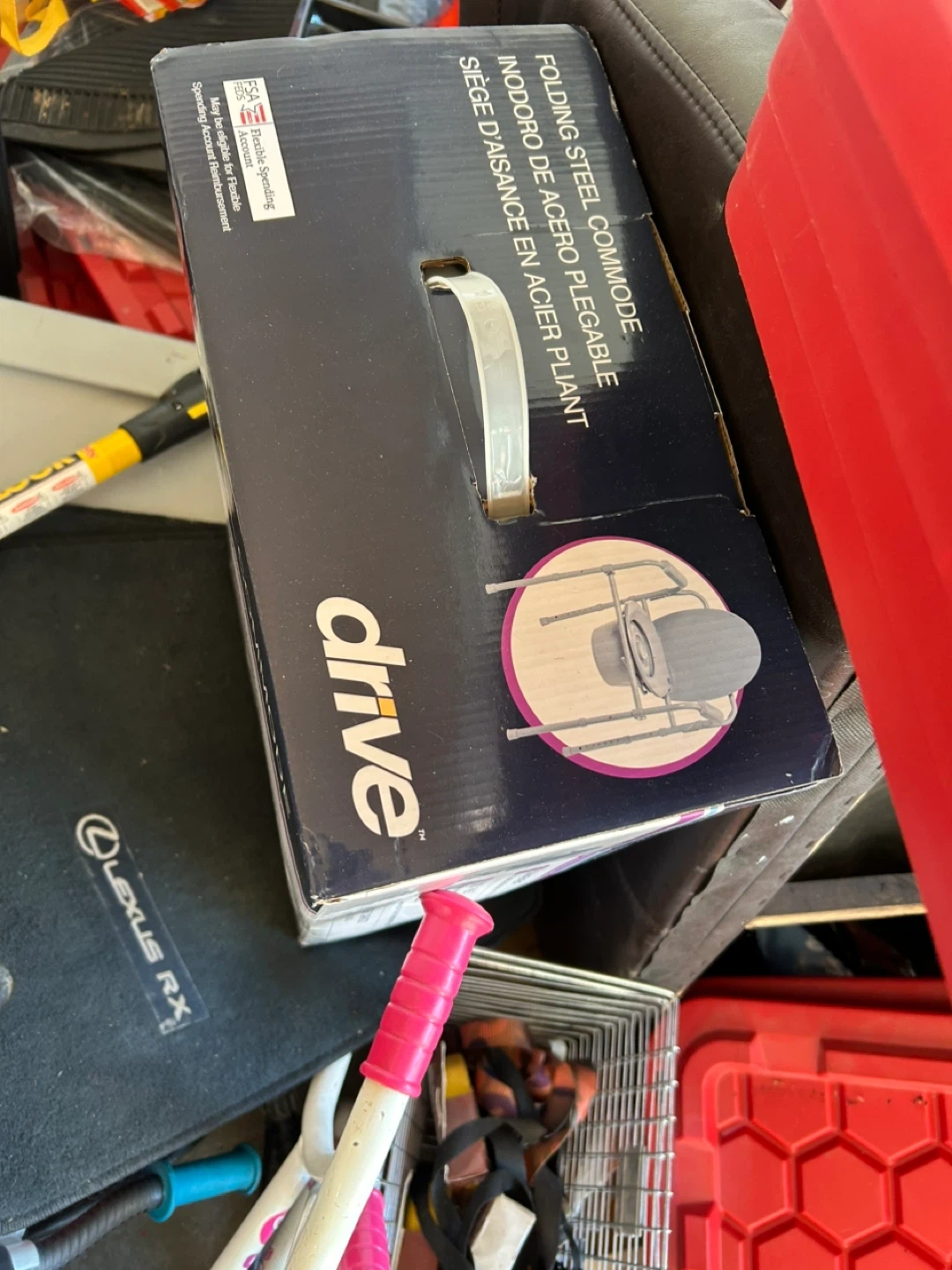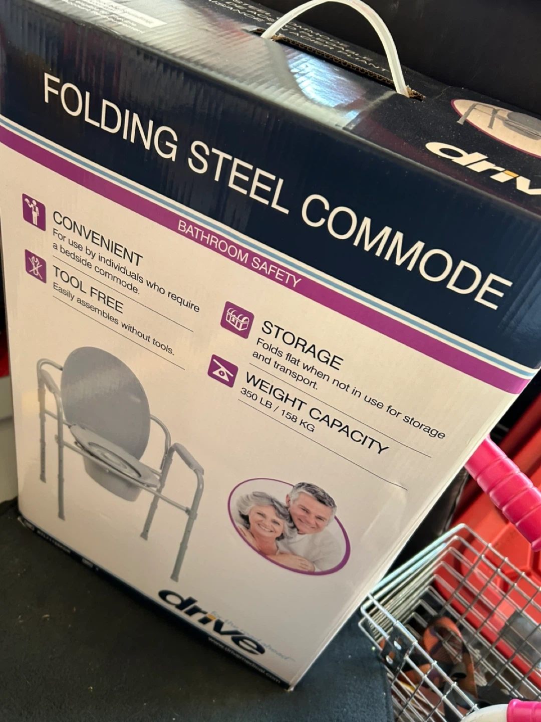 Weight limit of 360 lbs. Brand new. Paid 99 plus tax from Jollys. Folds for storage. Portable toilet/ commode goes anywhere. Could also be used for camping.