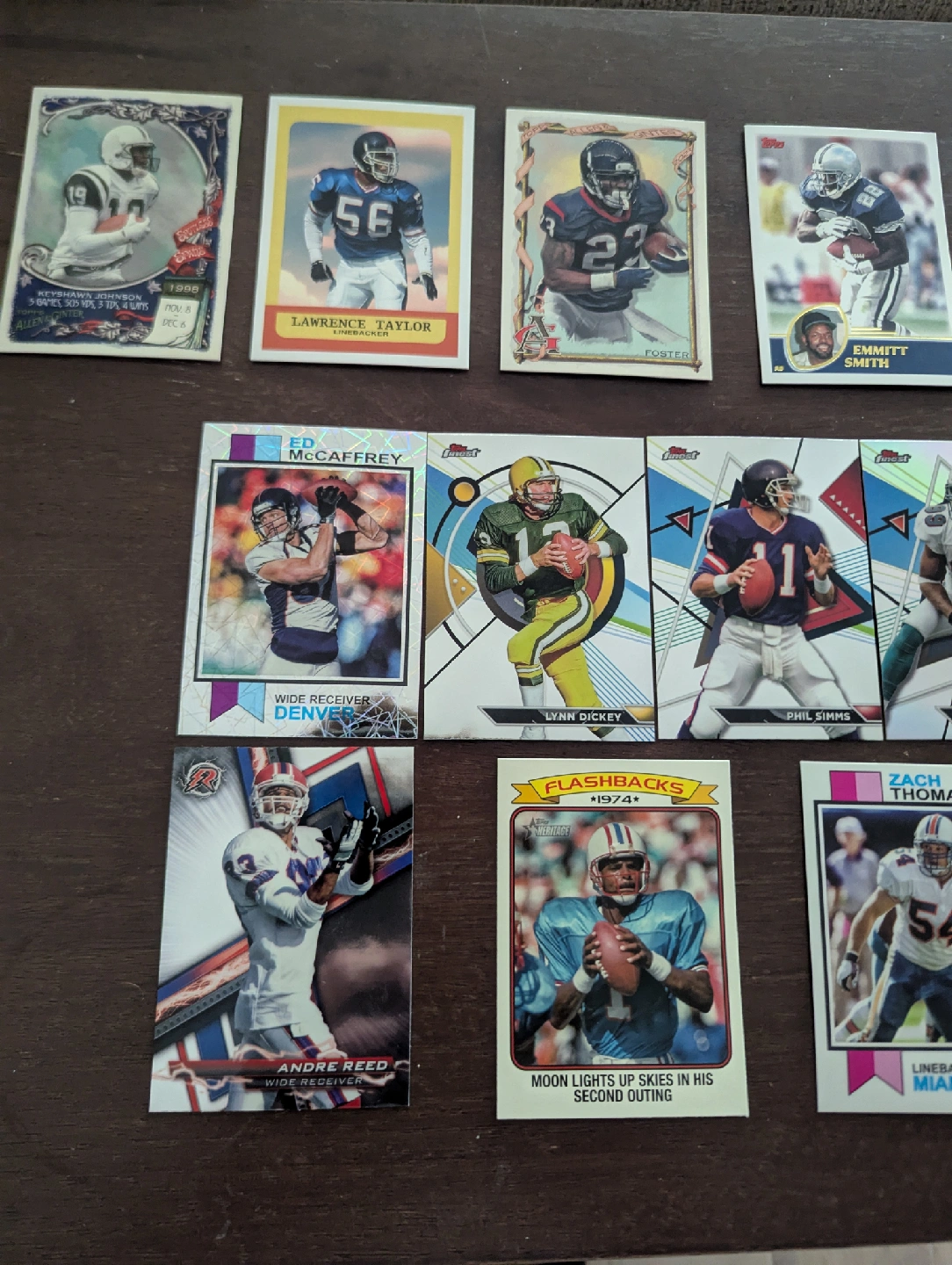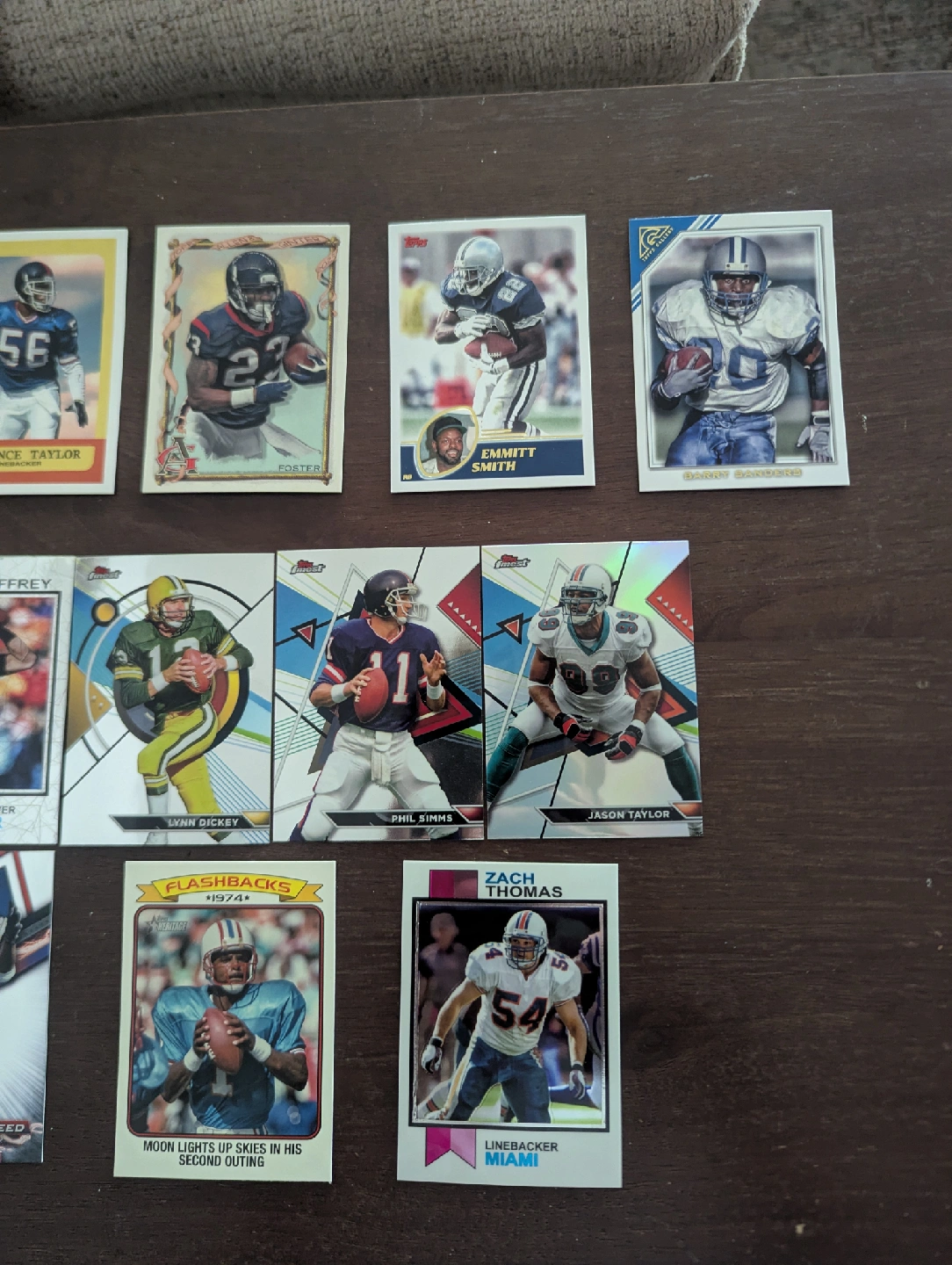 I have a collection of football trading cards for sale. They feature various players and teams. Great for collectors!