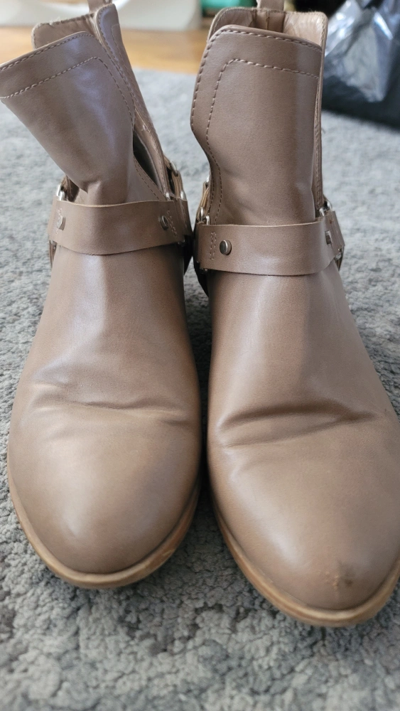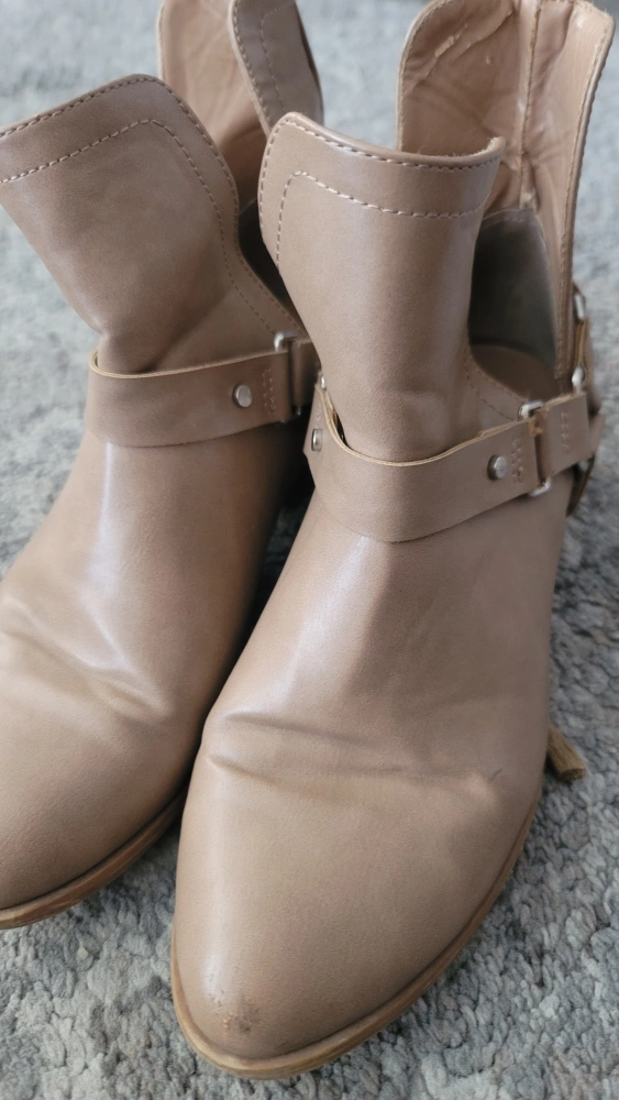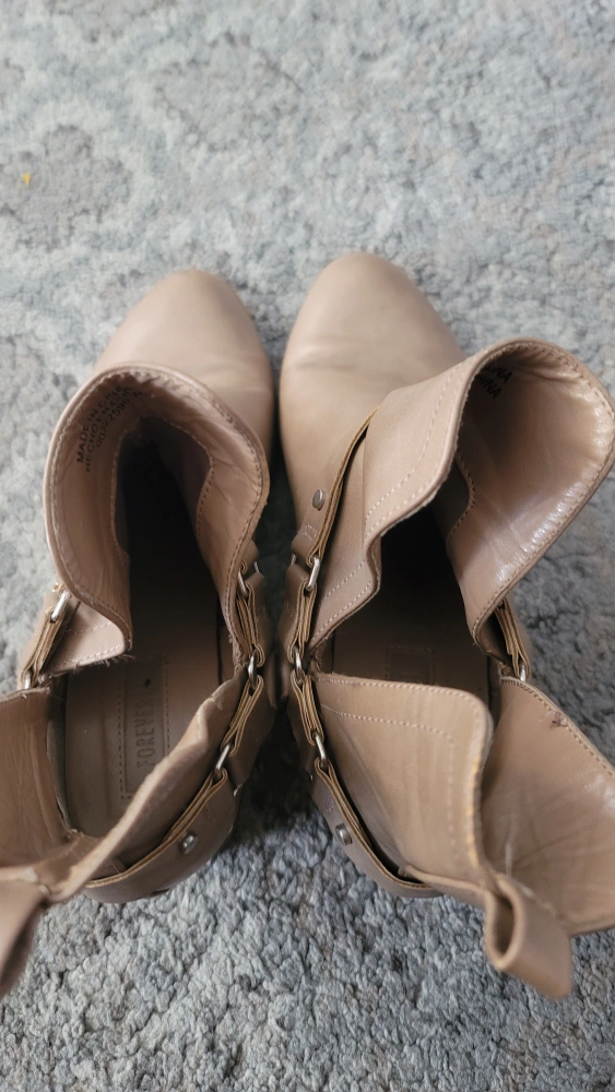 Selling a pair of Forever 21 ankle boots in a beige colour. They are a size 7 and have some signs of wear as shown in the photos.