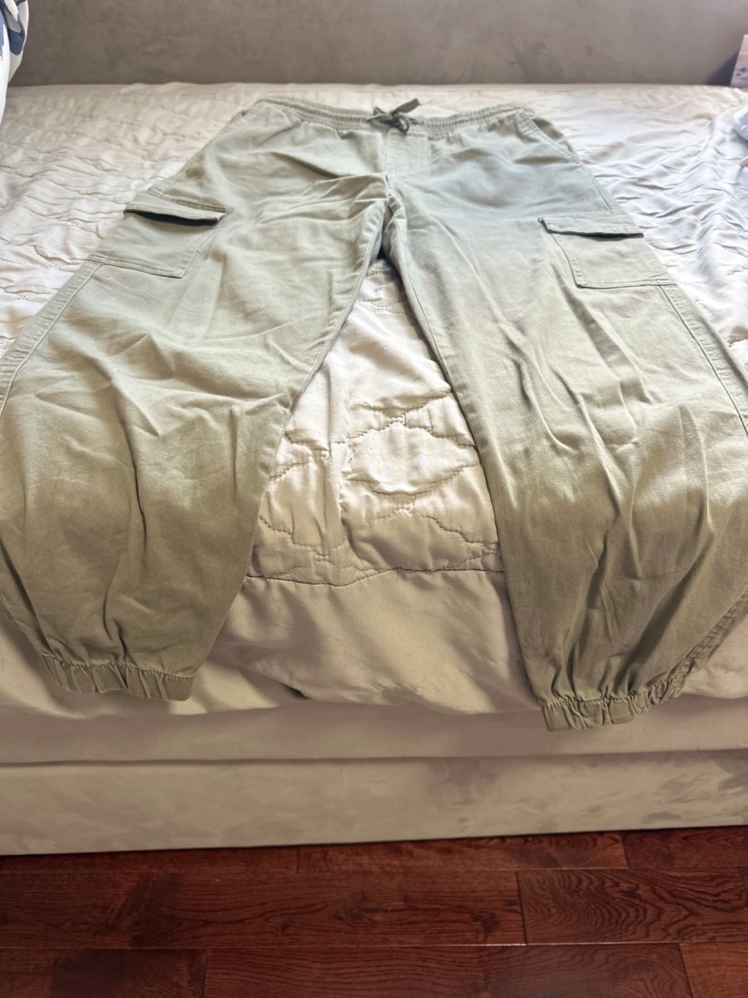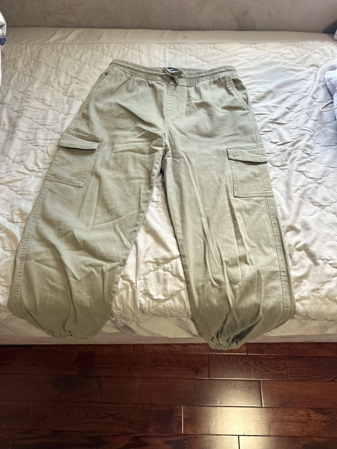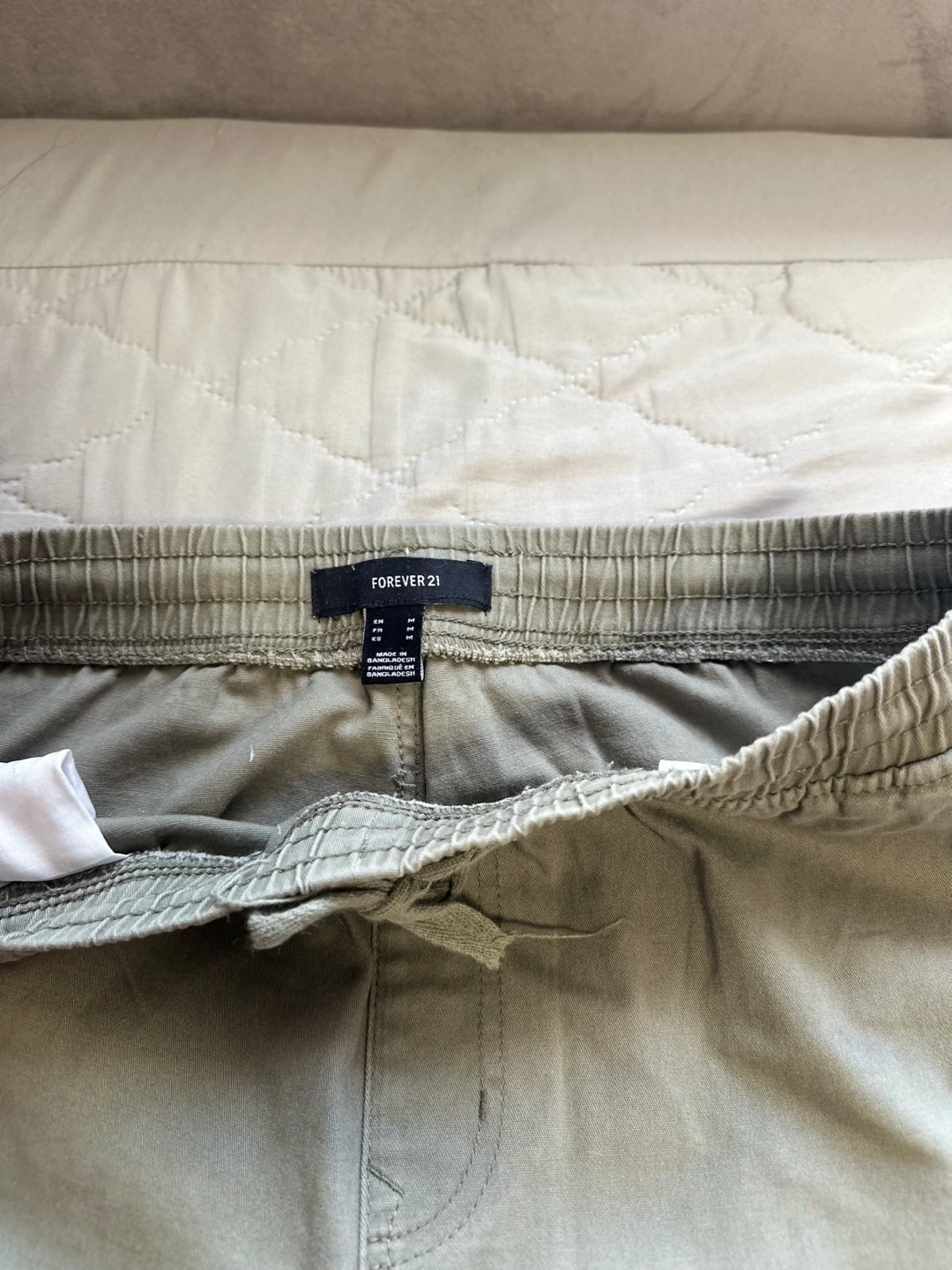 Selling a pair of Forever 21 cargo pants in size medium. They're in great shape! The colour is a light olive green and I also have the beige colour too. Both sizes are medium. Both for $20 or 1 for $15