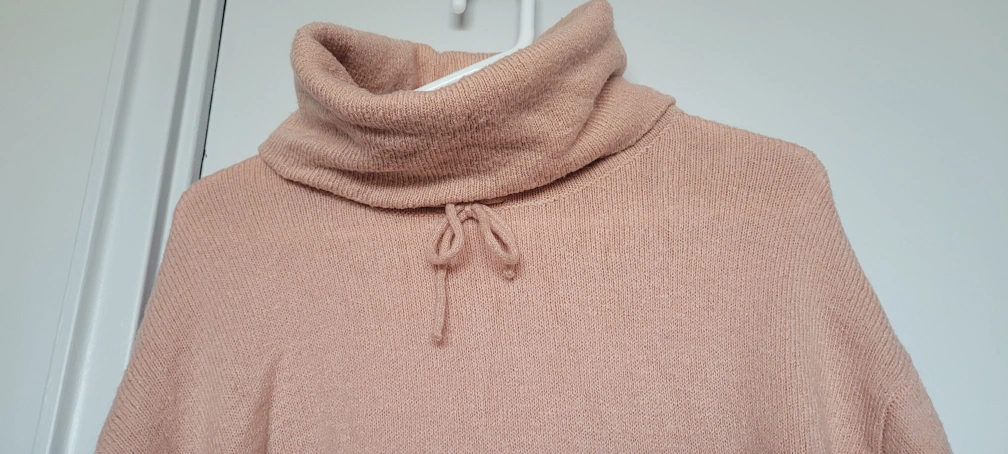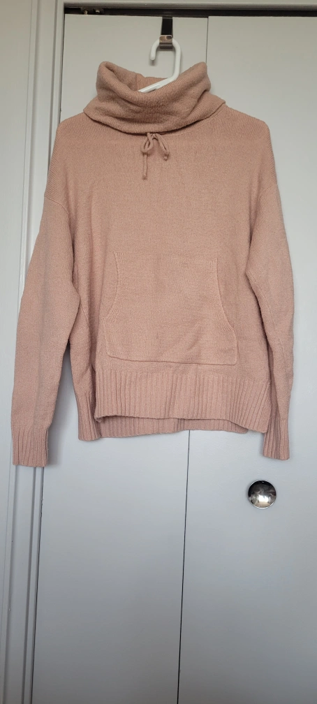 Cozy up in this Forever 21 cowl neck sweater! It's a lovely light pink colour and features a cute drawstring detail at the neck and a handy front pocket. The material is a blend of 50% acrylic, 42% polyester, and 8% wool with 2% spandex/elastane, making it super comfy and warm! Bought off Karrot, was too oversized for me. I usually wear a size XS Coming from a clean smoke-free, pest-free, pet-free home. Available to meet around Bathurst & Sheppard, Vaughan Mills or around Finch & Yonge. Cash Only!!