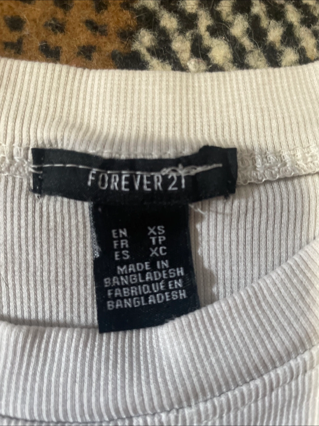 I'm selling a Forever 21 ribbed tank top in size XS. It's in great condition and perfect for layering or wearing on its own. The material is soft and comfortable, great for everyday wear,stretchy material on arms