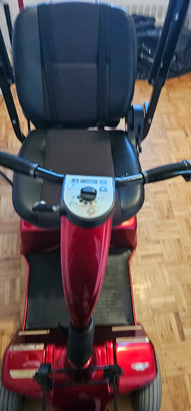 Selling a red Pride FORTREE 1700 mobility scooter. It's in great condition and ready to go! Perfect for getting around with ease and comfort.