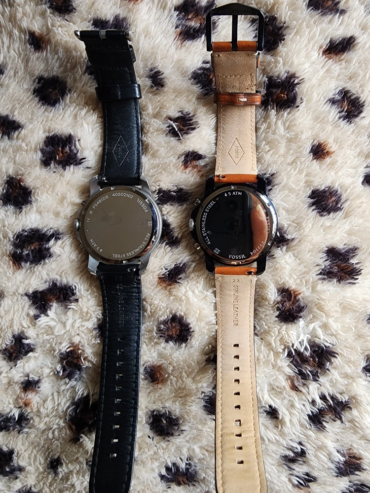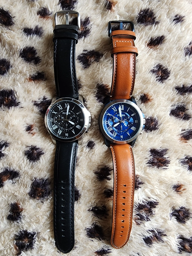 Fossil Grant Chronograph Watches – FS4812 (Black Face) & FS5151 (Blue Face) $100 each or both for $160 Selling two elegant Fossil Grant watches: Condition: FS5151 – Blue face, brown leather strap: Brand new, never worn FS4812 – Black face, black leather strap: Worn about 3 times Features: Quartz Chronograph Movement – For precise and reliable timekeeping Straps: Genuine leather – Black & Brown Case Diameter: 44mm with classic Roman numeral markers Band Width: 22mm Water Resistance: 5 ATM (splash/rain resistant) These Fossil Grant watches blend sophistication and function, ideal for both formal occasions and everyday wear. 📍 Price: $100 each $160 for both Serious inquiries only. Will not respond to “Is this still available.”