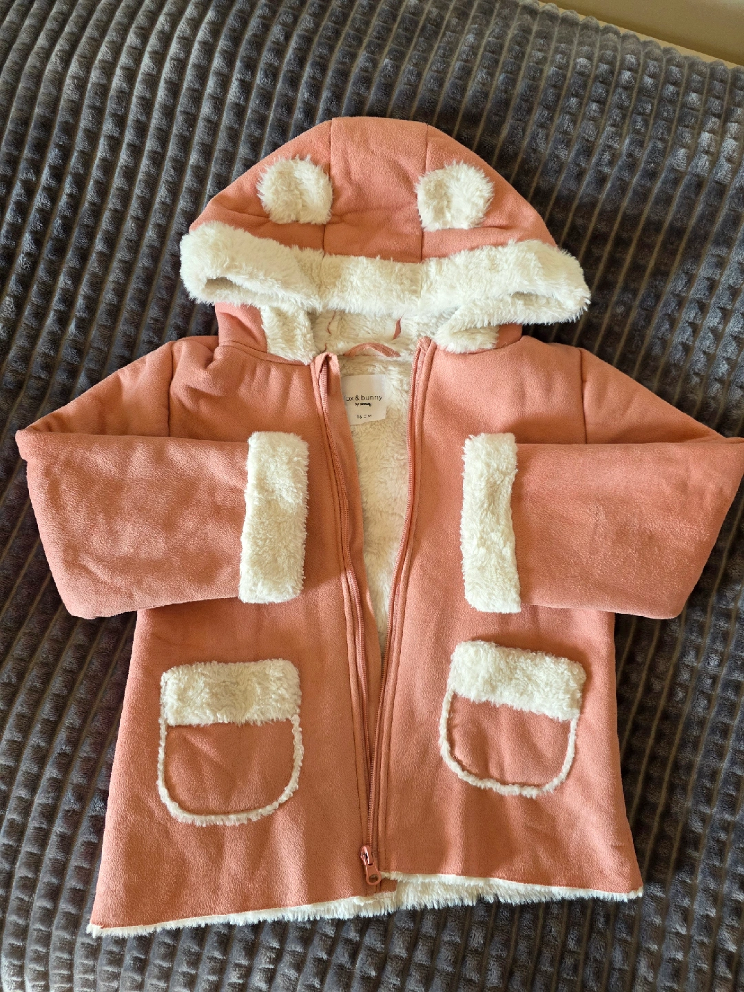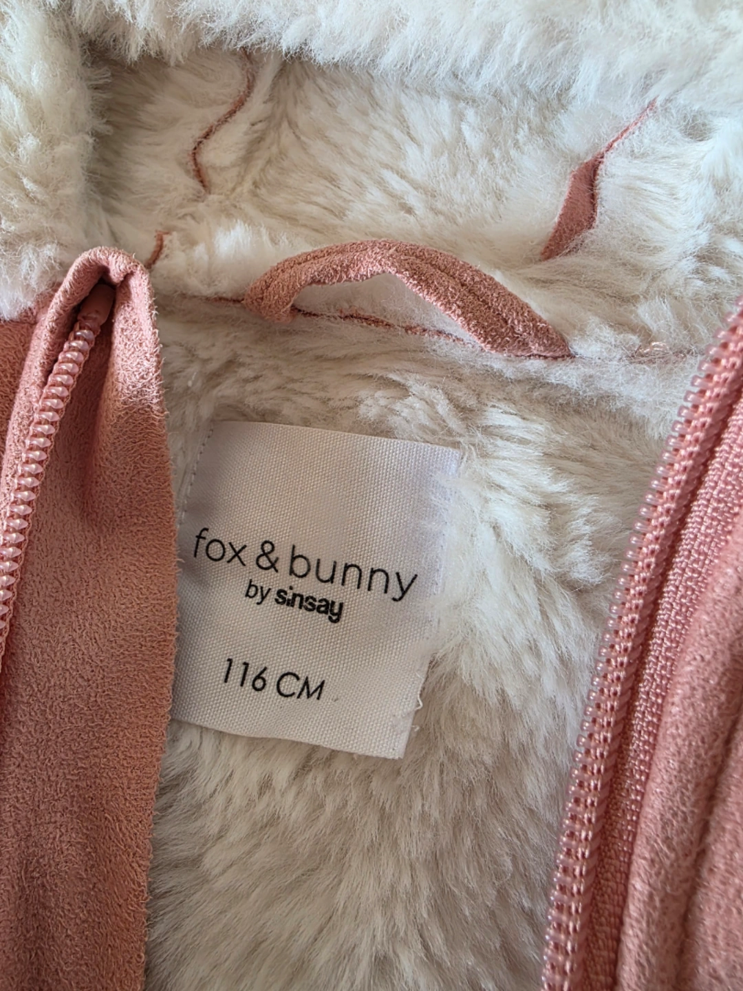 A cute Fox & Bunny by sinsay kids jacket, perfect for keeping your little one warm and stylish! The jacket is size 116 cm and features a cozy, furry lining and adorable details.