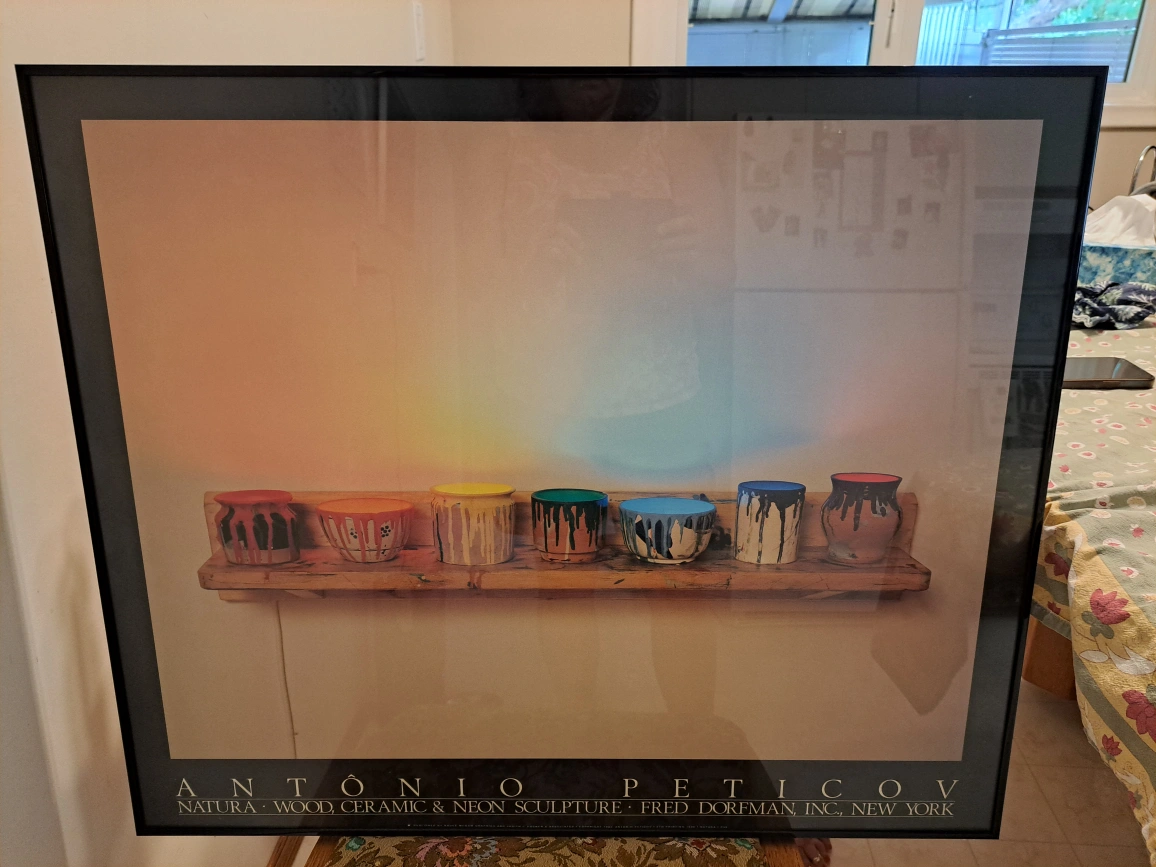 Framed art by Antonio Petricov. The piece is titled NATURA - WOOD, CERAMIC & NEON SCULPTURE. Fred Dorfman Inc., New York it's in mint condition 30 1/4" x 25 1/4" non smoking home cash only