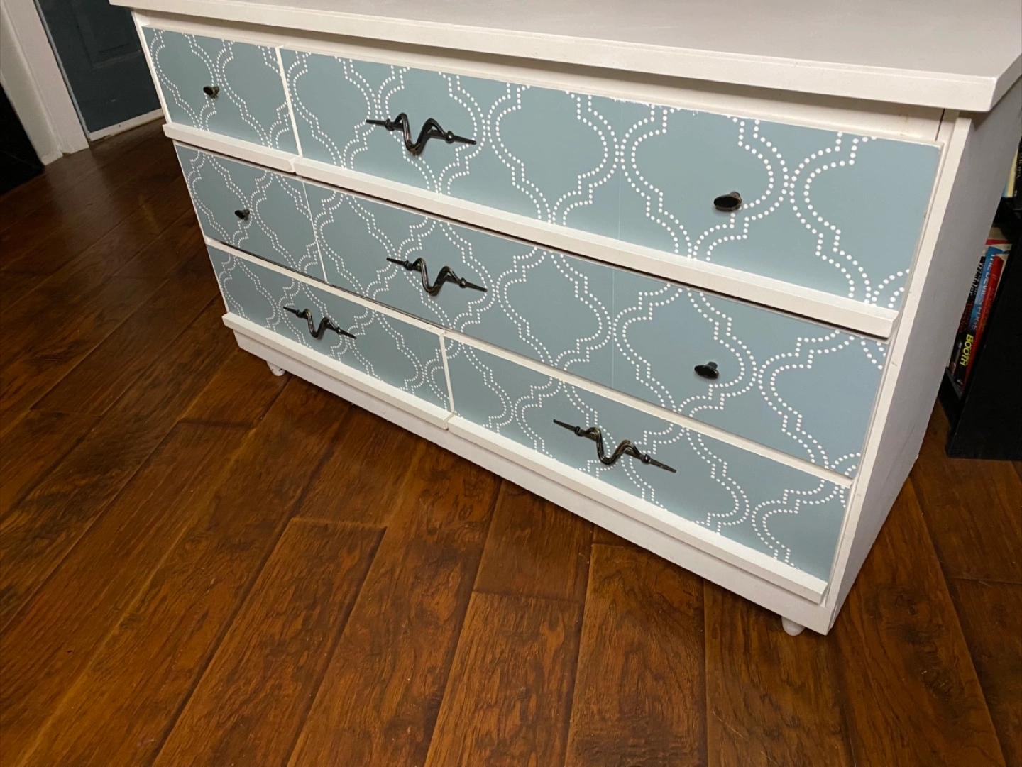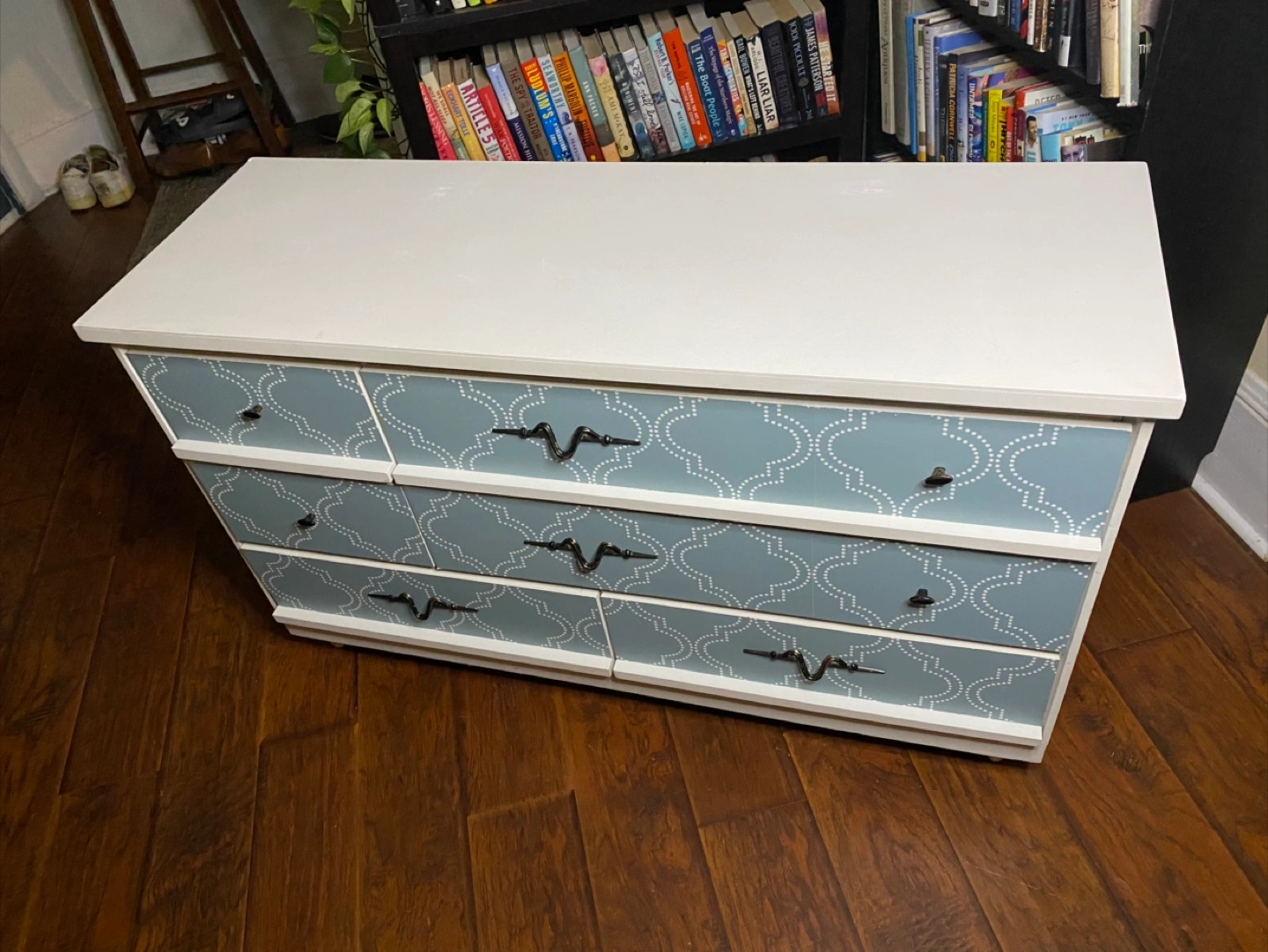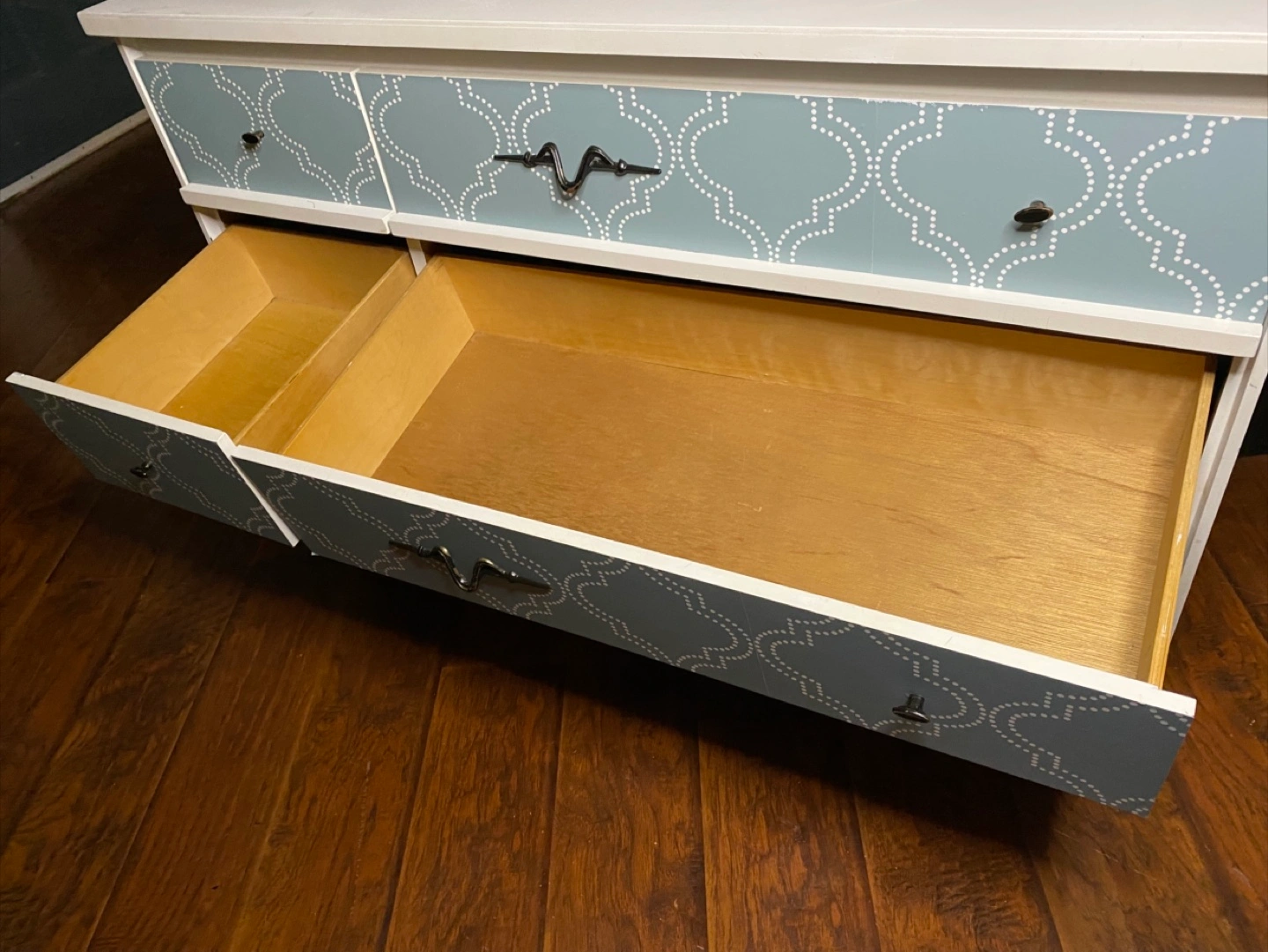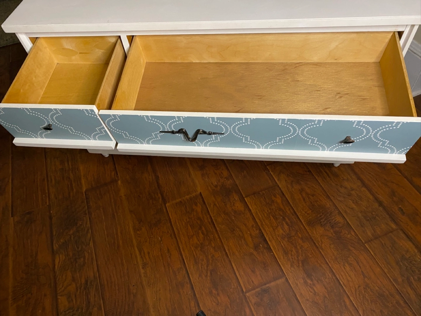 Beautiful dresser in both mid-century modern and contemporary styling (hybrid styling), with a heavier leaning towards contemporary. Drawer pulls have an accent to them, somewhat whimsical and artistic. Made from real wood. Sturdy. All the drawers work properly and everything is clean. No odours. Delivery is included in the price, available throughout HRM. Right to refuse on delivery; check it out and try out on delivery. $160 Exact Measurements: Height: 29 inches (or 2 FT & 5 inches). Width: 47.05 inches (or 3 FT & 11.05 inches). Depth: 16.5 inches (or 1 FT & 4.5 inches).
