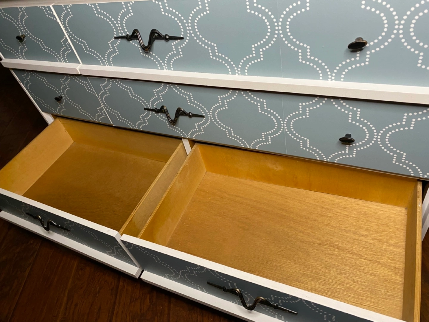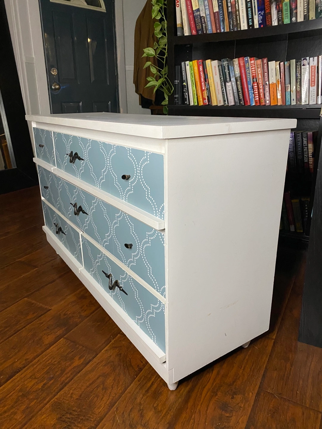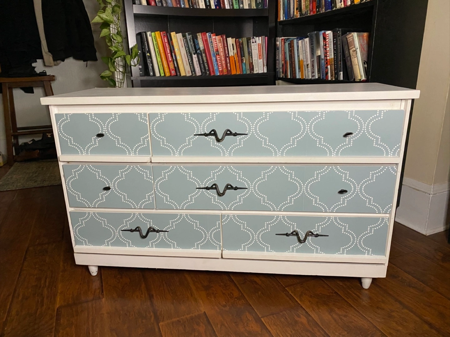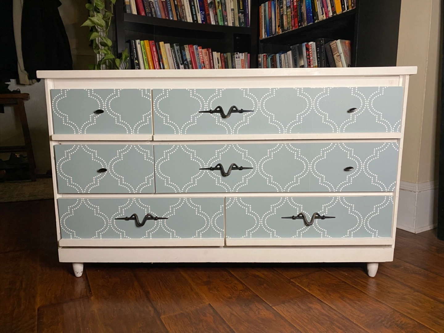 Beautiful dresser in both mid-century modern and contemporary styling (hybrid styling), with a heavier leaning towards contemporary. Drawer pulls have an accent to them, somewhat whimsical and artistic. Made from real wood. Sturdy. All the drawers work properly and everything is clean. No odours. Delivery is included in the price, available throughout HRM. Right to refuse on delivery; check it out and try out on delivery. $160 Exact Measurements: Height: 29 inches (or 2 FT & 5 inches). Width: 47.05 inches (or 3 FT & 11.05 inches). Depth: 16.5 inches (or 1 FT & 4.5 inches).