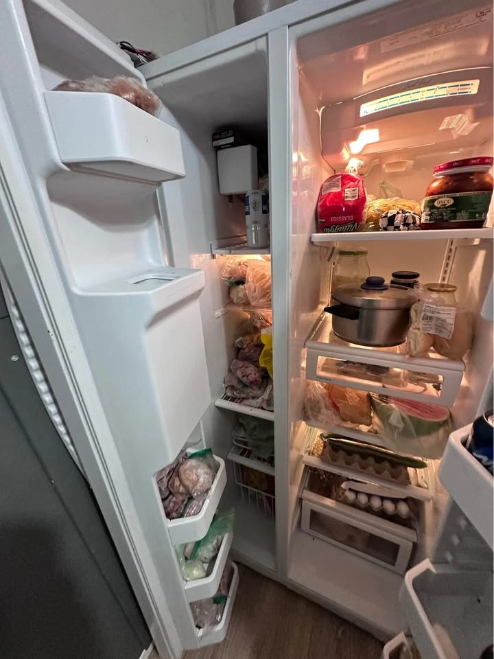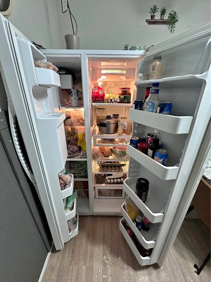 Excellent working fridge and freezer! Working perfectly, lights are on, every shelf is there. Doors dismantled for easy move, ready to go Height: 66.75 in (169.5 cm) Width: 35.5 in (90.2 cm) Depth: 31 in (78.7 cm, without door)