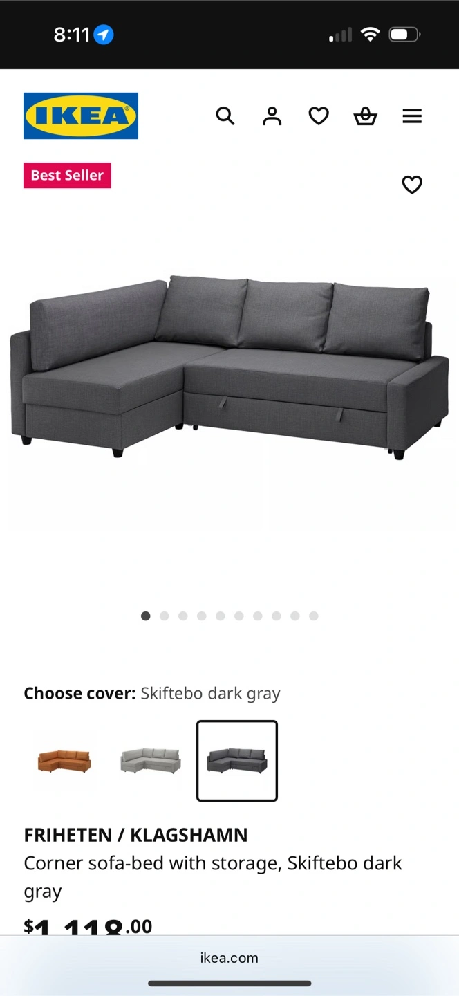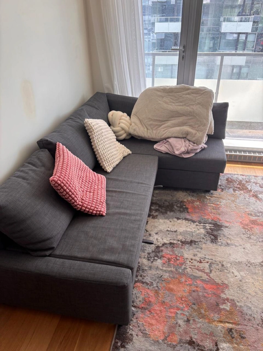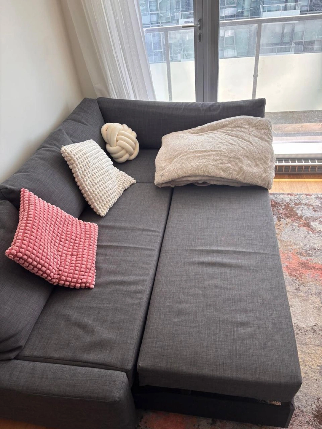 Selling my dark gray IKEA FRIHETEN/KLAGSHAMN corner sofa-bed with storage. Originally bought for $1,128 CAD. ✅ Pulls out into a bed ✅ Built-in storage space ✅ Detachable bottom for easy moving/cleaning ✅ Comfortable and versatile – great for small spaces or guest rooms