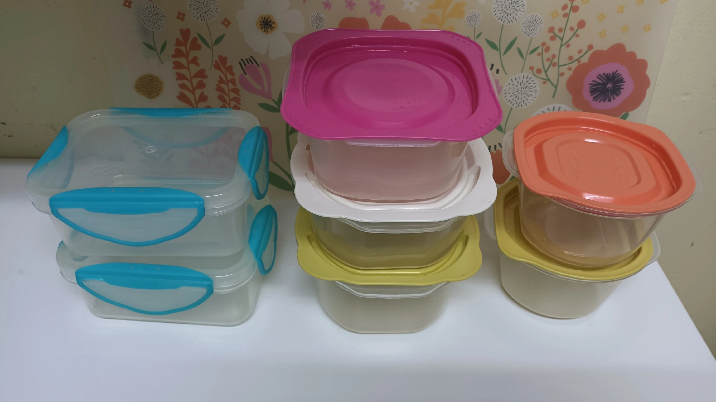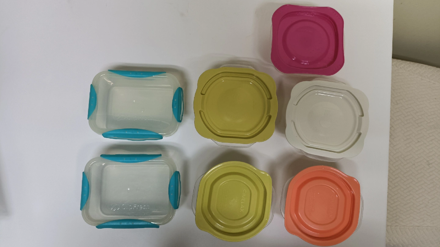 Selling a set of 7 food storage containers with locking lids! They come in a variety of colours including pink, orange, yellow, white, and blue. Great for meal prepping or storing leftovers