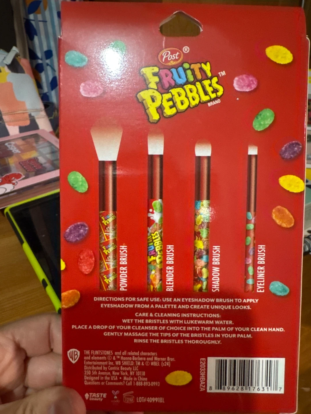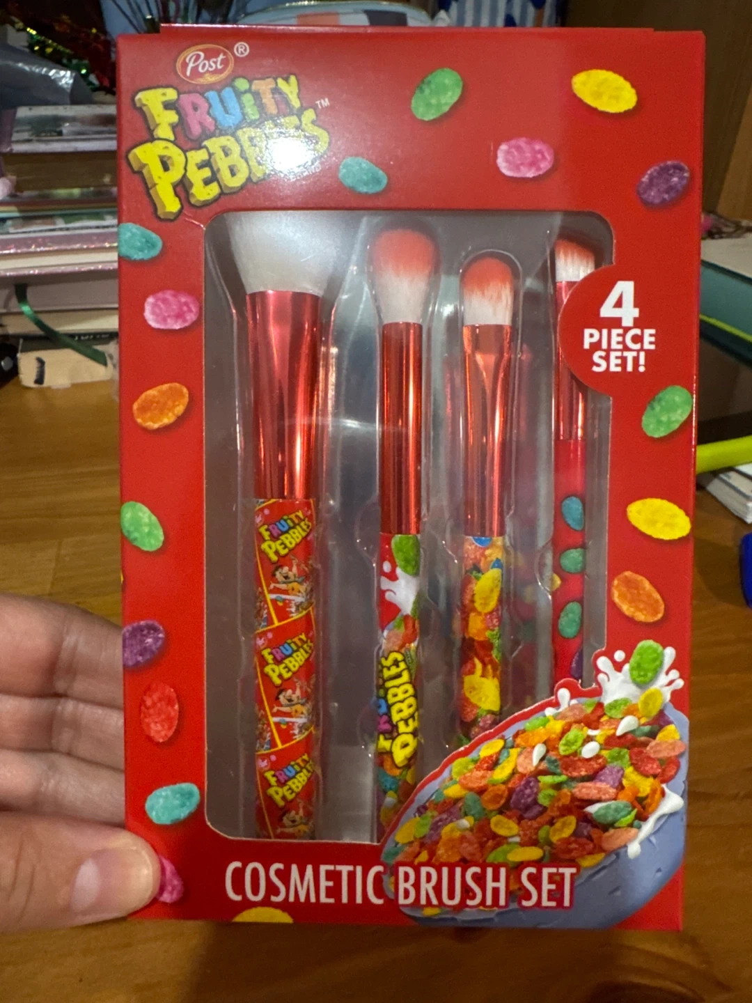 Get ready to create some colourful looks with this Fruity Pebbles cosmetic brush set! This set includes four brushes: a powder brush, blender brush, shadow brush, and eyeliner brush. Perfect for adding a touch of fun to your makeup routine! 4 packs left