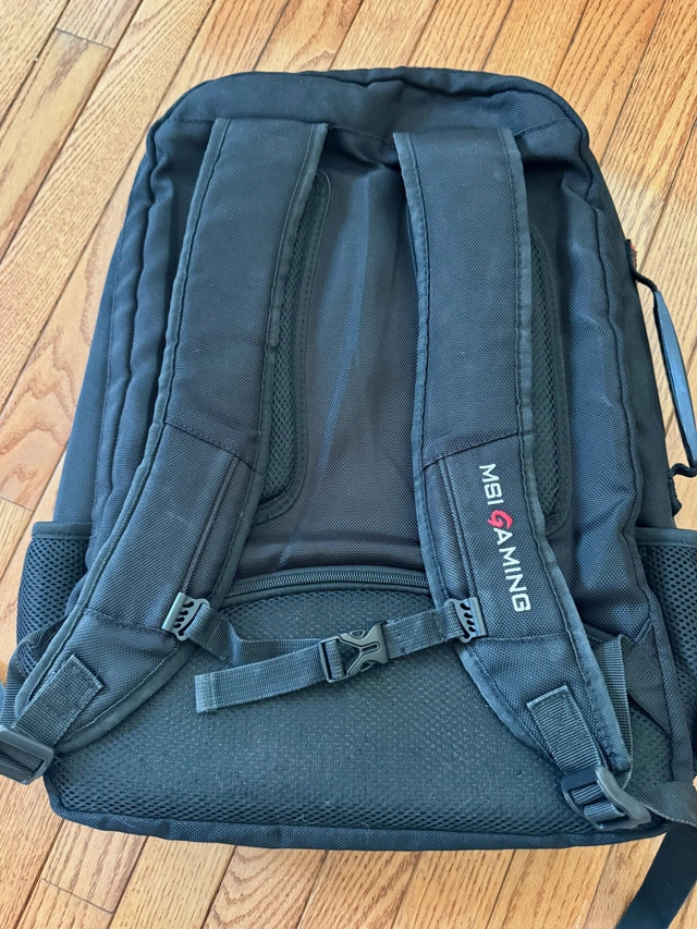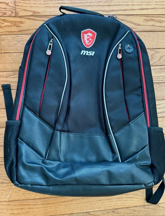 Large MSI Gaming backpack. Plenty of space, pockets, etc., and room for a large notebook, iPad, and other electronics, books, clothes, etc. High-quality zippers. Perfect for school and travel. Only used once or twice, so in like-new condition. See photos. Pickup in north Richmond Hill near Yonge and Stouffville.