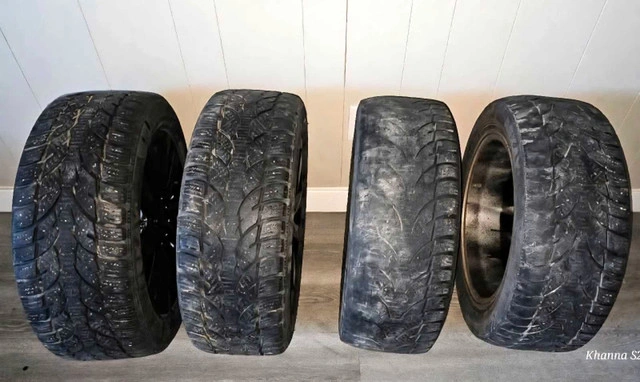 WILL NOT RESPOND TO HI IS THIS AVAILABLE? IF THE POST IS UP, YES IT IS. SERIOUS BUYERS/TRADERS ONLY 4 OEM rims 16" bolt pattern 5x114.3 with tires available for sale, 2 tires have good life and thread, check the picture. I have extra 2 studdable new tires which you can replace with the old, worn out tires. Selling all 4, with rims and 2 tires without rim. So total 4 rims and 6 tires. (ONE TIRE IS WORYH $185) Its a steal deal. Reason to sell: bought for my Toyota corolla but didn't fit and can't return because i bought from market place. It can fit honda civic but, check bolt pattern first. Originally silver colored but, i painted them black for more esthetic look. You can keep only the rims and trade tires with someone else.