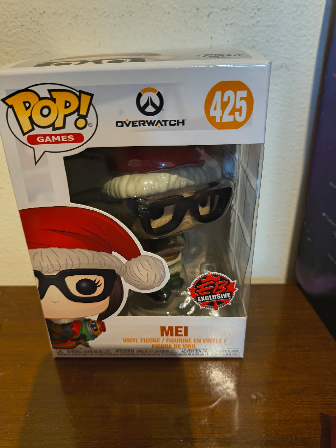 Selling a Funko Pop! Games Overwatch figure of Mei, number 425. It's an EB Games exclusive vinyl figure, still in its original box!