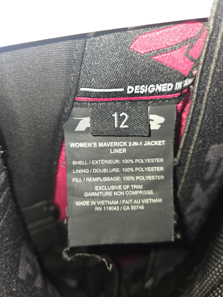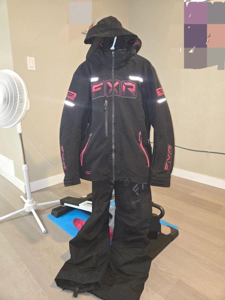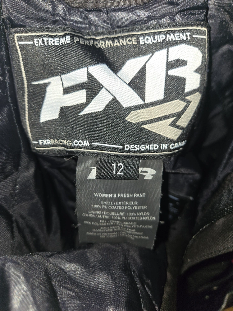 Selling a women's FXR Maverick 2-in-1 jacket liner and Fresh pant set in size 12. The jacket's shell and lining are both 100% polyester, and the pants are made with a polyester shell and lining.