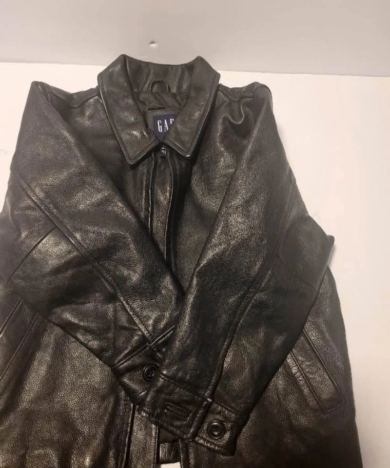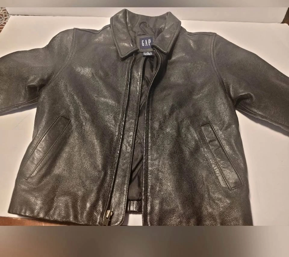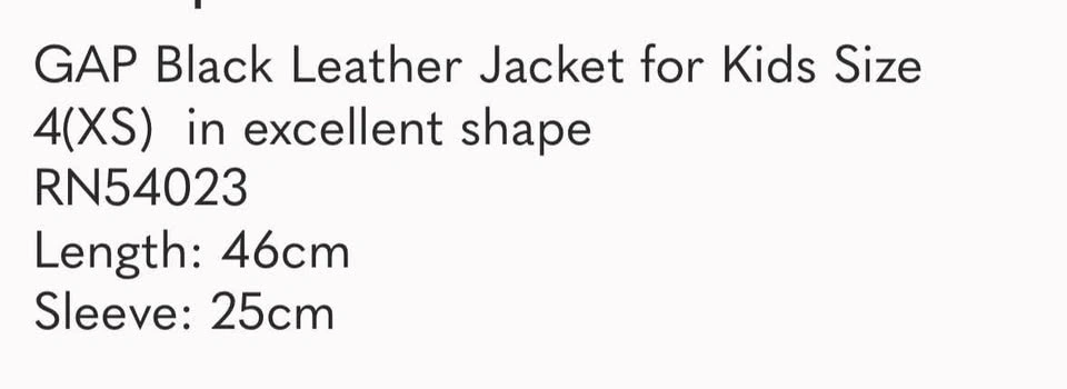 GAP Black Leather Jacket for Kids Size 4(XS) in excellent shape RN54023 Length: 46cm Sleeve: 25cm Retails for $136