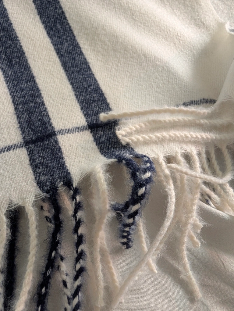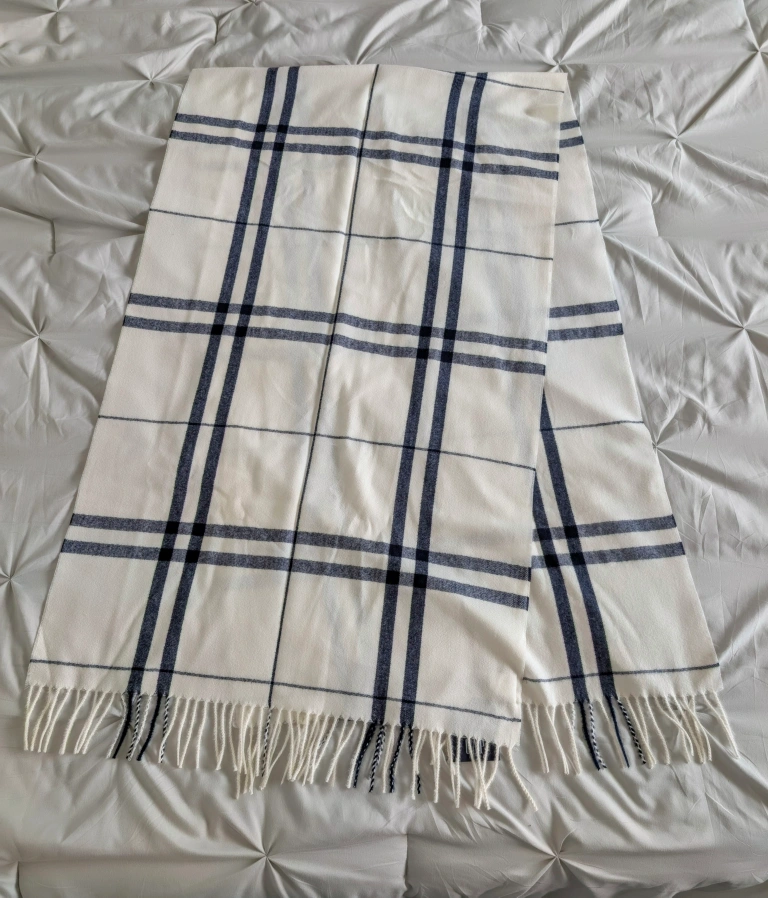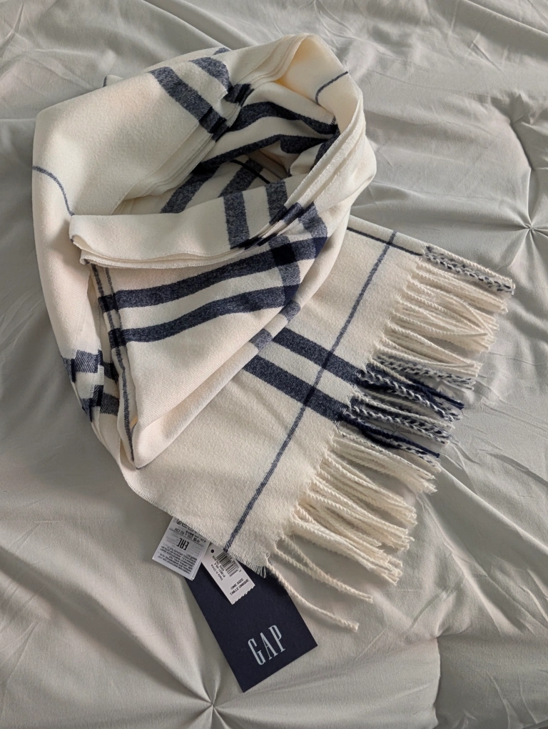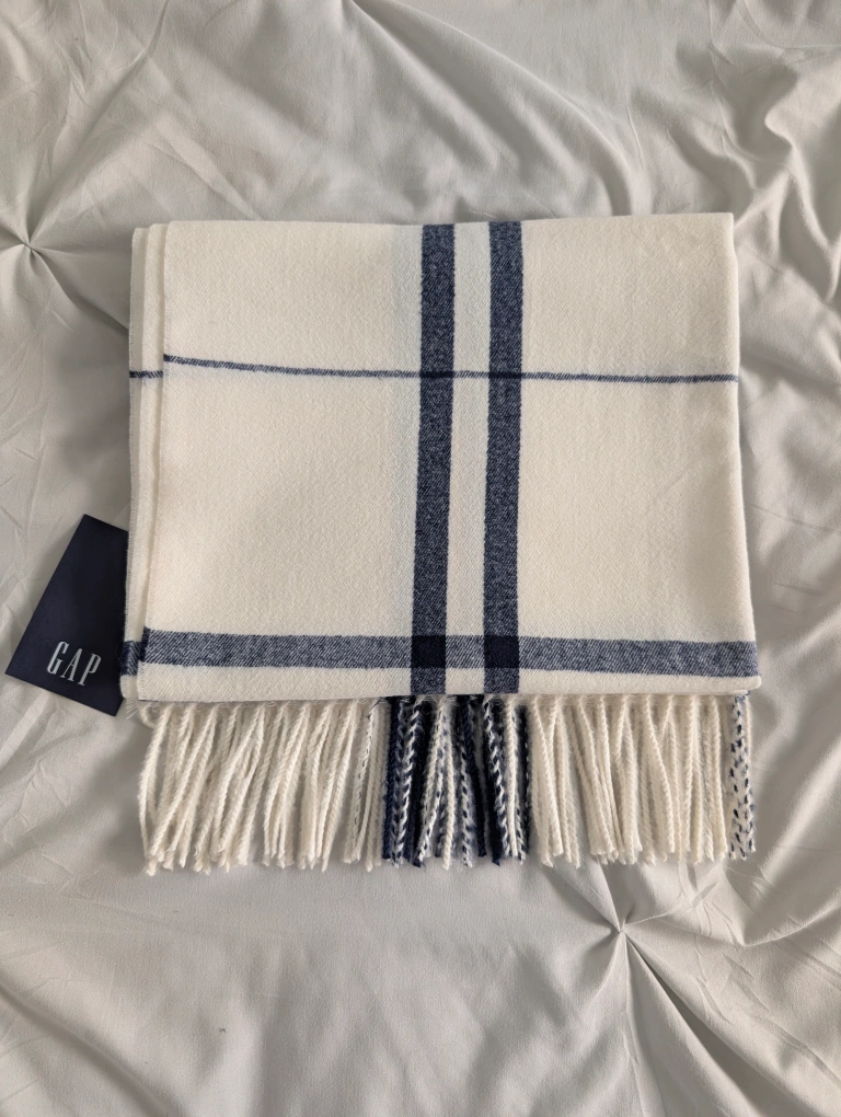 GAP Super Soft Cream and Navy Plaid Scarf Wrap