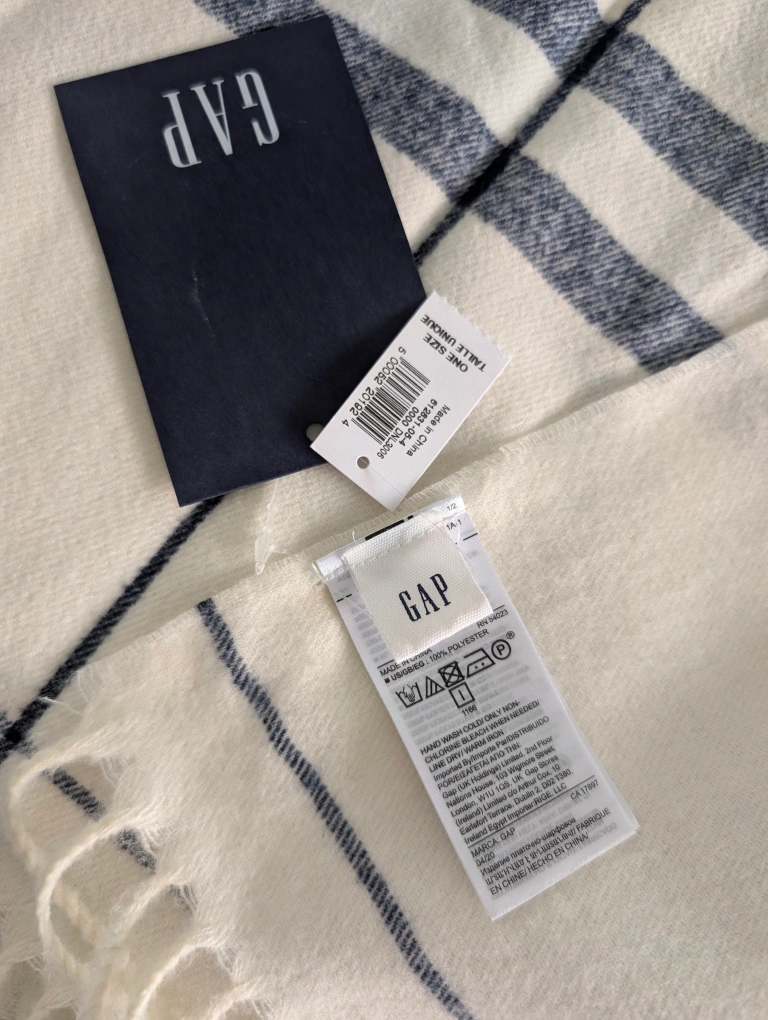 Gap large and cozy wrap scarf. 24" wide x 80" long, very very soft. New with Tags, never worn. Great gift idea for yourself or a good friend!