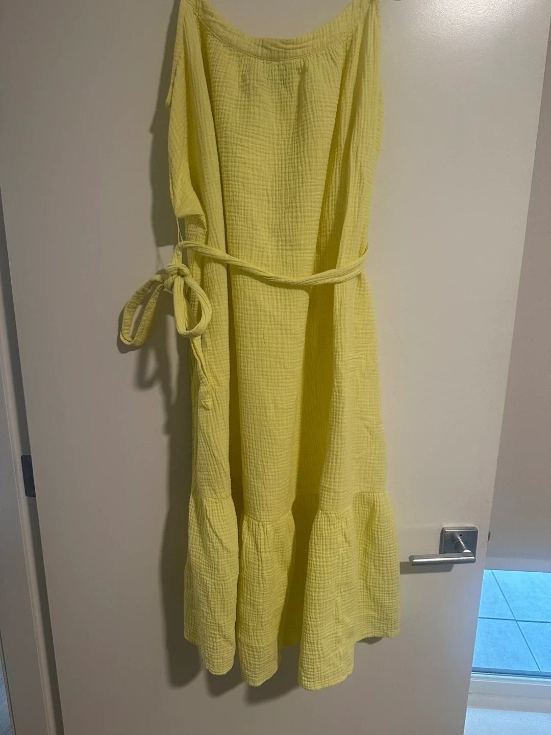 Selling a lovely yellow dress from GAP! It's a size XXL and has a nice, flowy fit. Perfect for summer days or layering in the cooler months. The material is soft and comfortable, making it a great addition to any wardrobe
