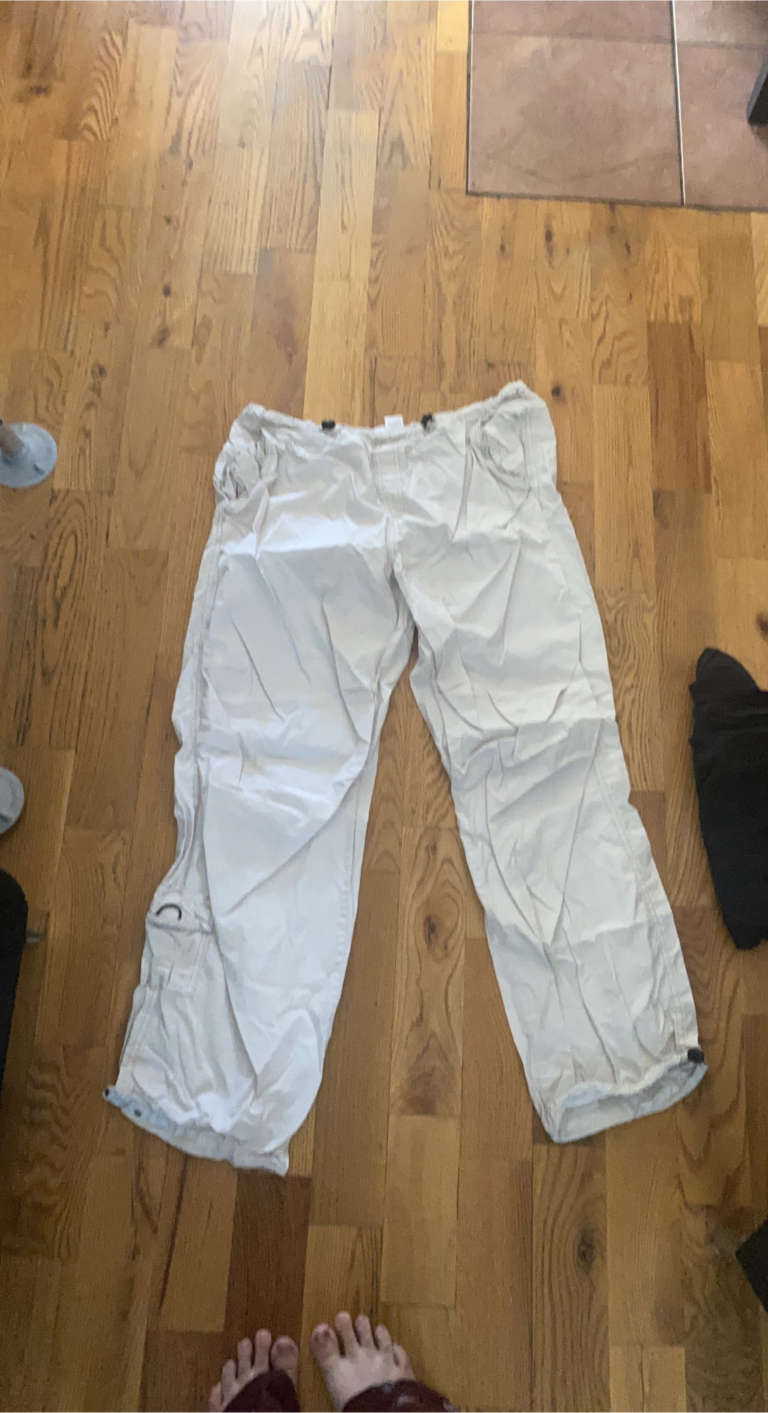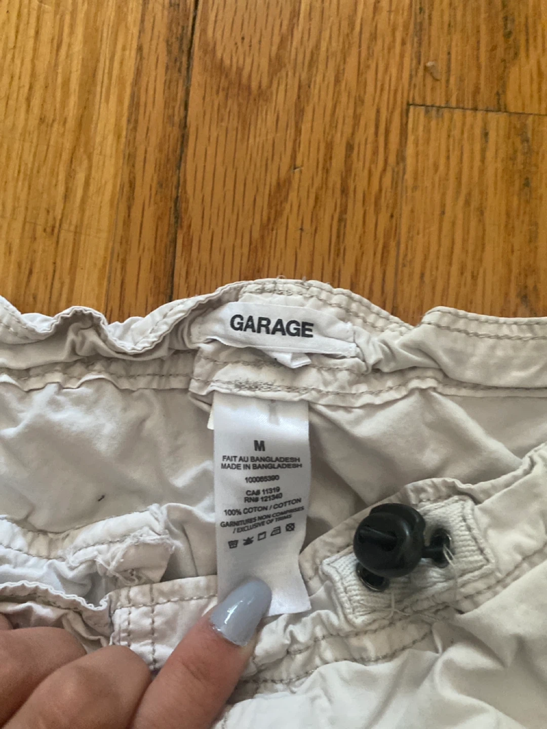 These are a pair of Garage cargo pants in size medium. They are made of 100% cotton. Perfect for a casual look!