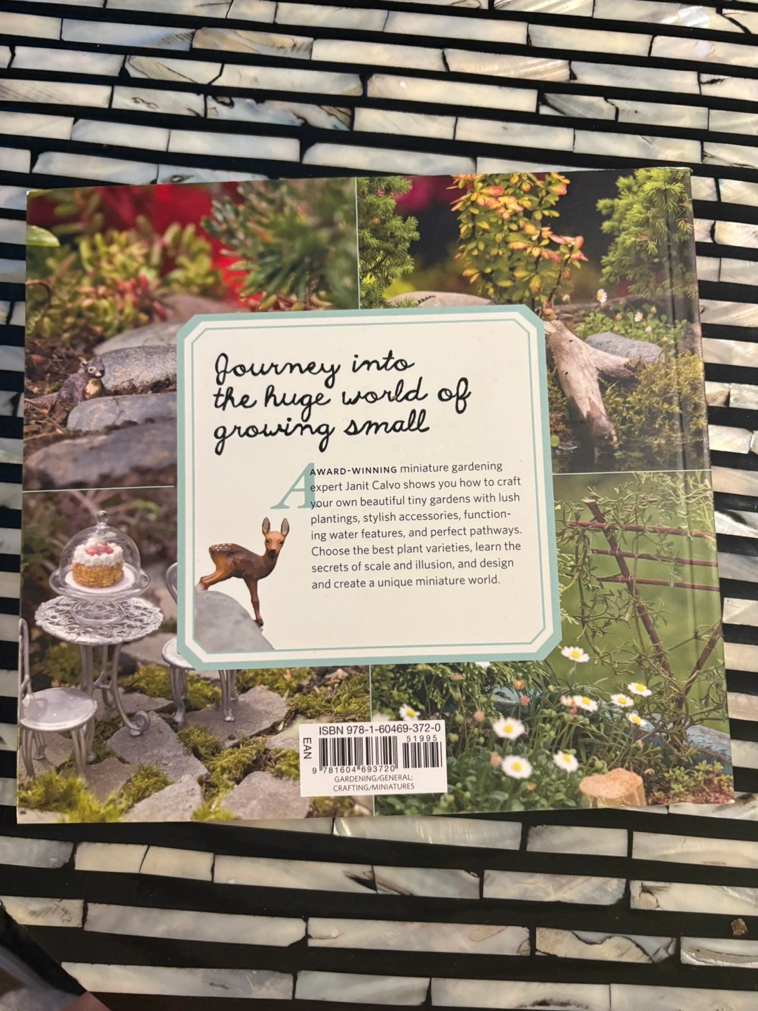 I'm selling a copy of 'Gardening in Miniature: Create Your Own Tiny Living World' by Janit Calvo! It's a great book for anyone interested in creating miniature gardens and landscapes. The book is in excellent condition and has lots of inspiration for your own tiny living world