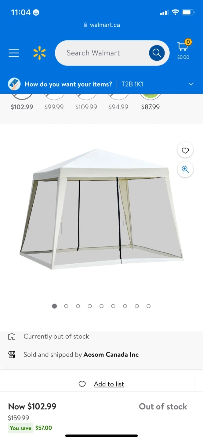Selling an Aosom Canada Inc. gazebo! It was originally listed for $159.99, we put it up twice and didn’t end up using it while camping. Instead it just takes up packing space when so hoping to get some money back for it. Asking $100 OBO