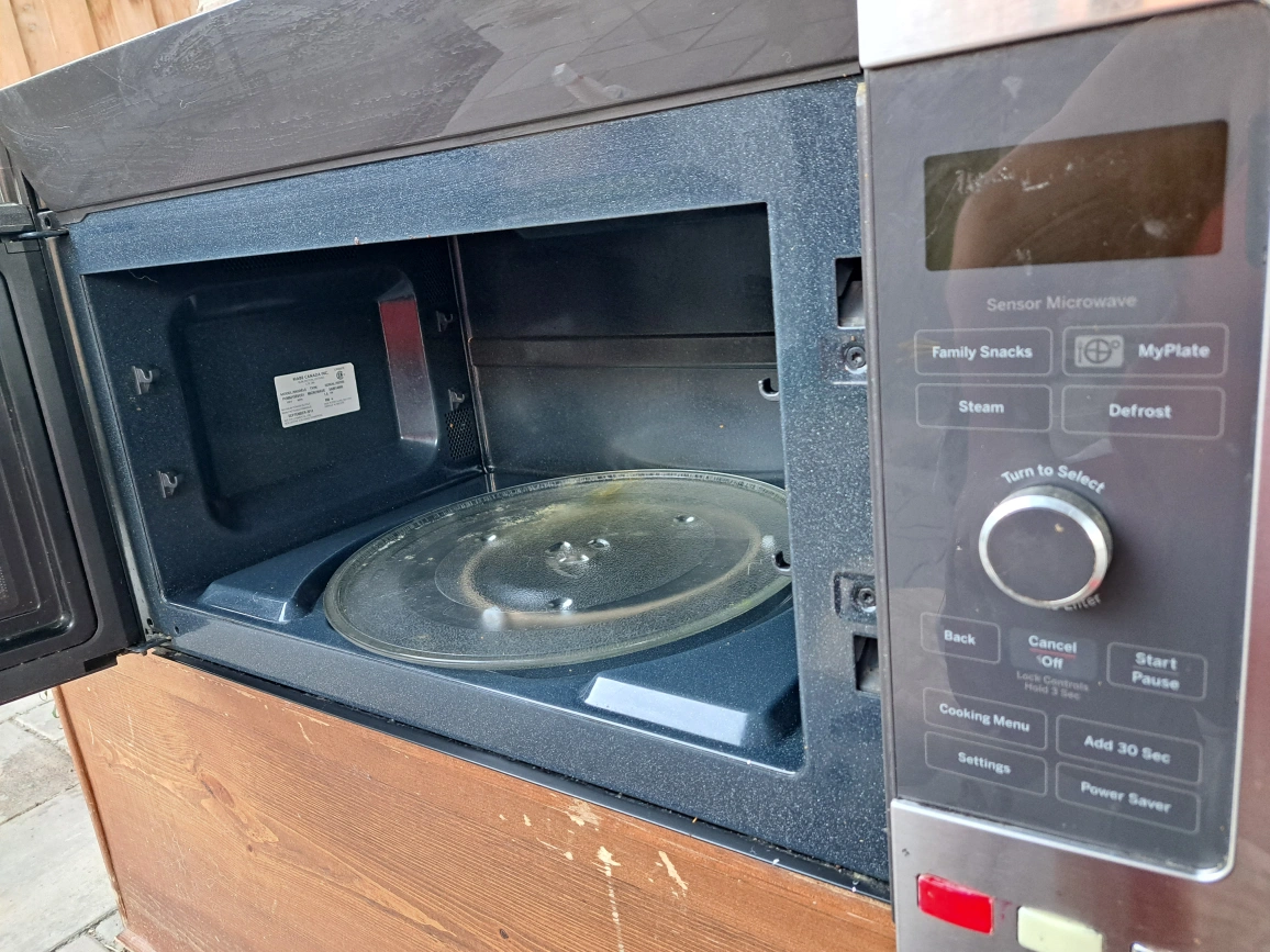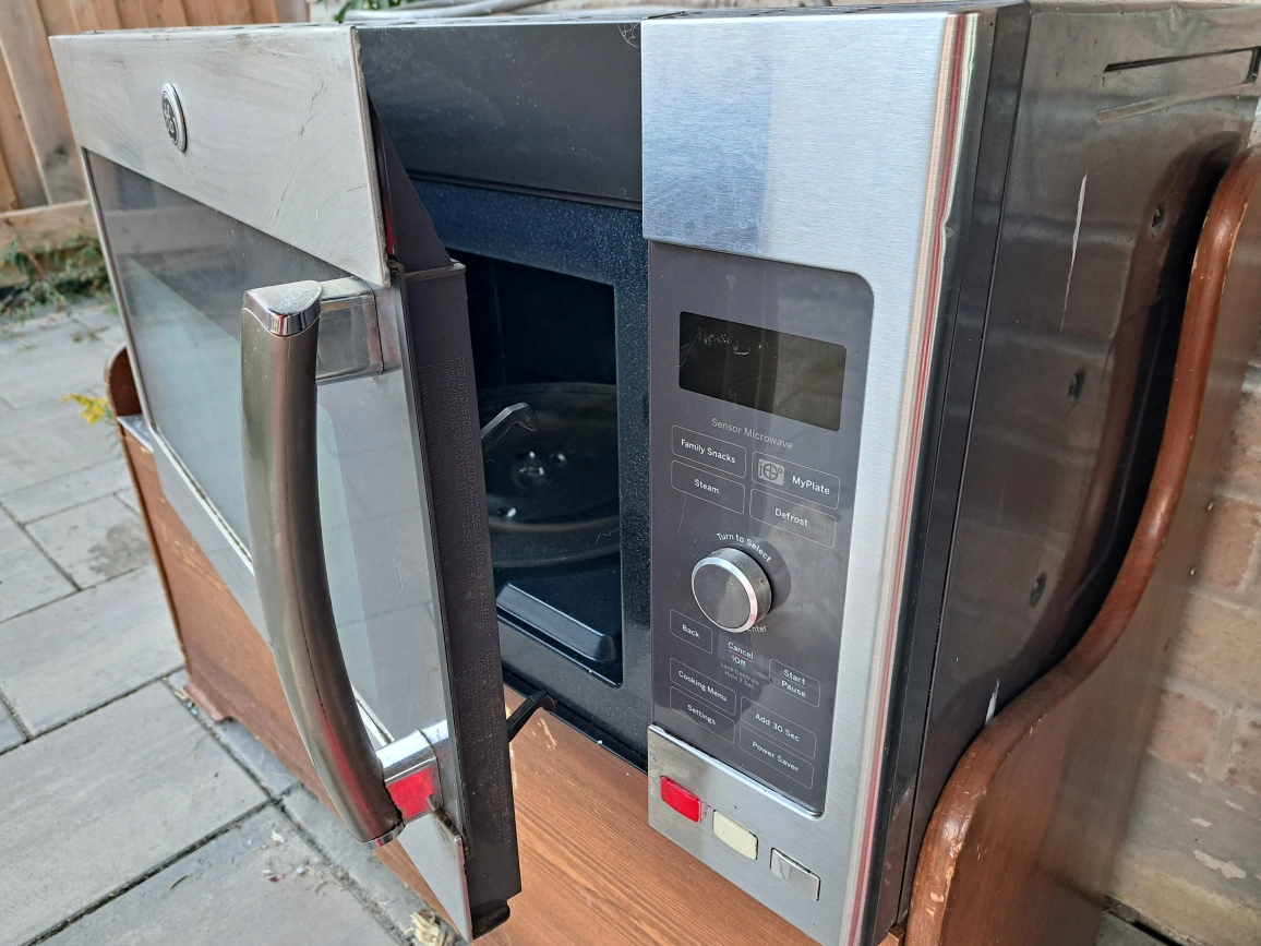 Selling a GE sensor microwave oven. It has some signs of use, but it's still functional. Features include sensor cooking options for family snacks and MyPlate, steam and defrost functions, and a convenient add 30 seconds button. Great for quick meals and reheating!