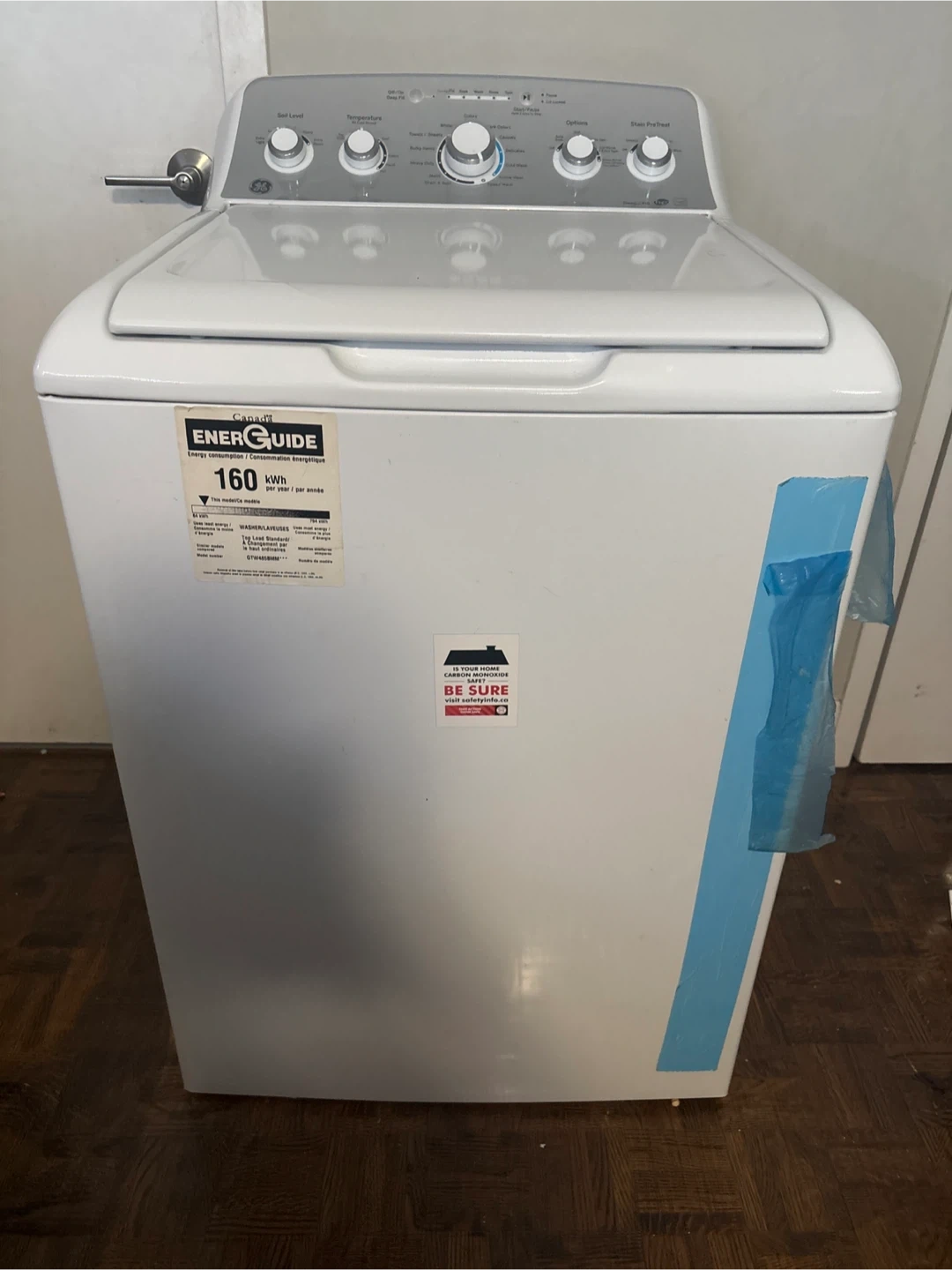 Selling a GE top load washing machine. It's white and in great working condition. It has various settings for different types of loads, including settings for whites, dark colours, jeans, and delicates. It also has a stain pre-treat option for extra cleaning power. It's a reliable machine that's ready to go!
