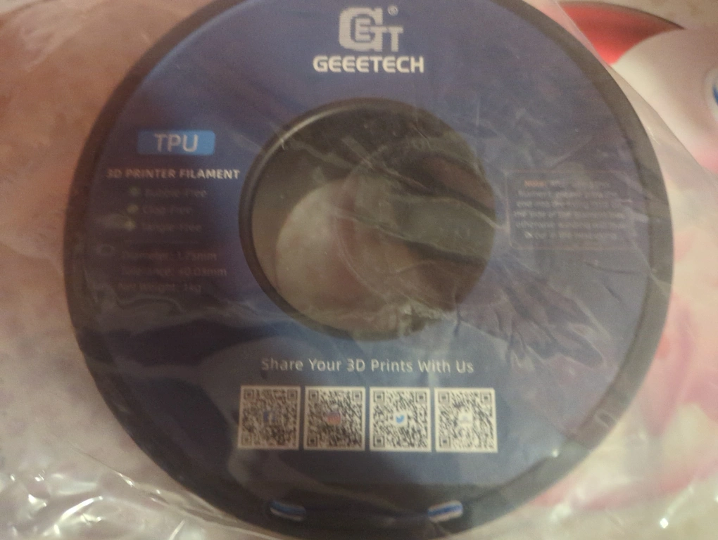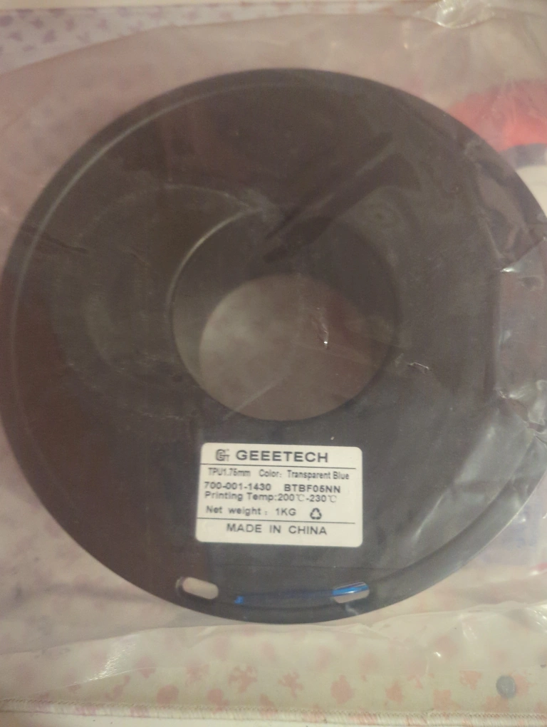 Selling a roll of Geeetech TPU 3D printer filament in transparent blue! It's 1.75mm in diameter and comes in a 1kg roll. This flexible filament is perfect for creating durable and impact-resistant 3D printed parts
