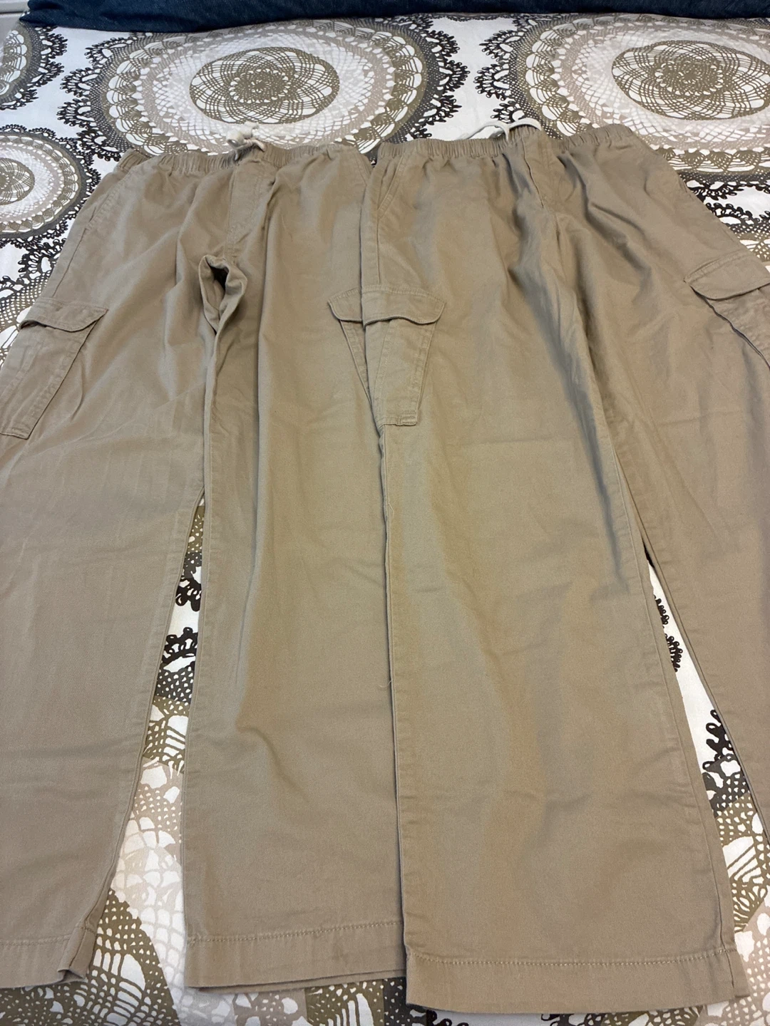 Size 14-16, Two pairs of khaki cargo pants. They're in great shape and ready for a new home!