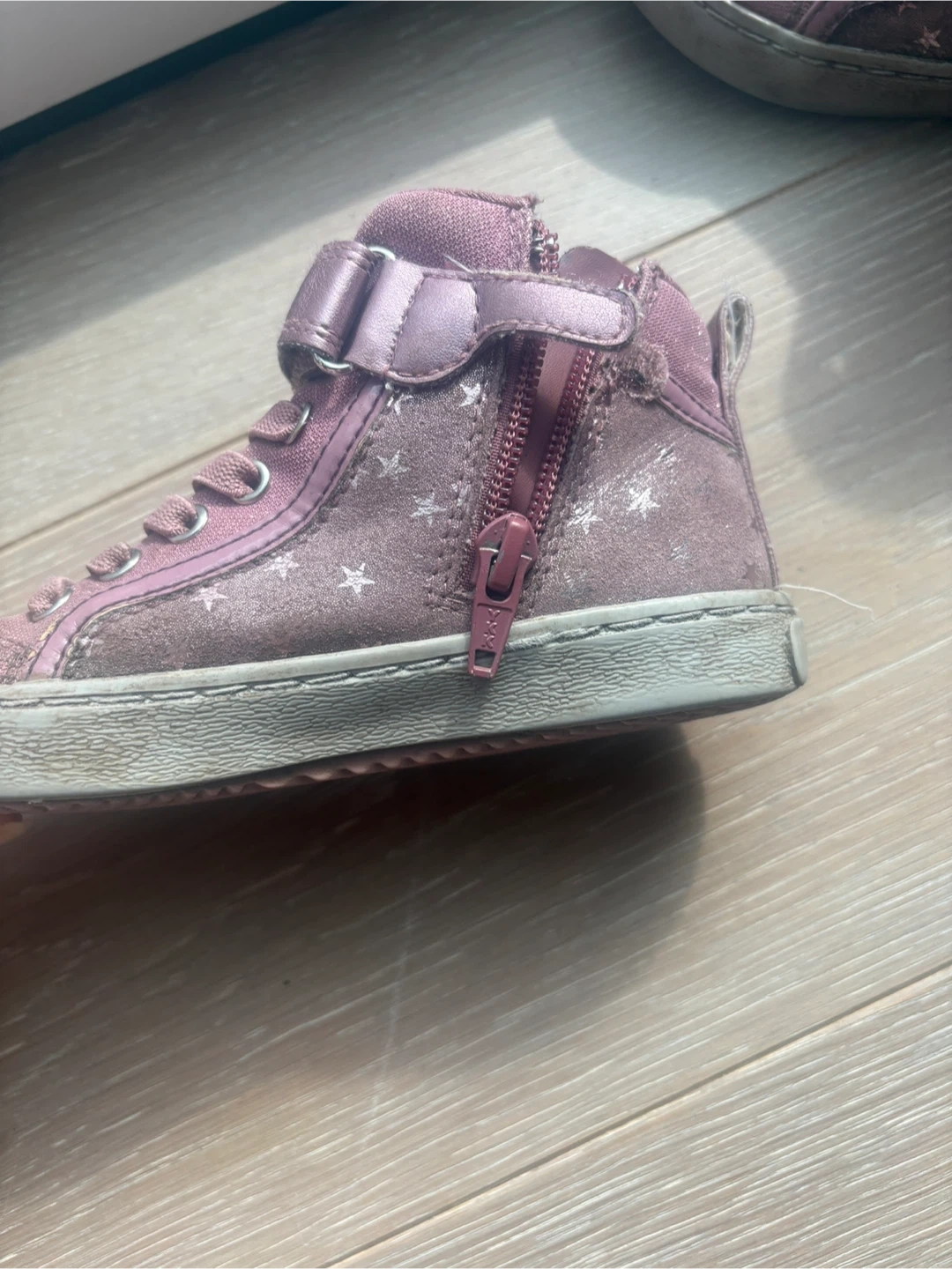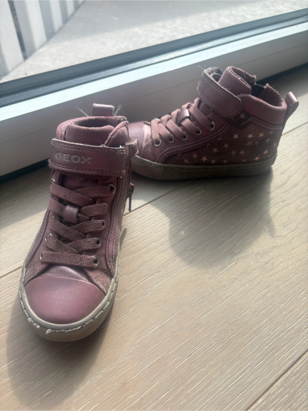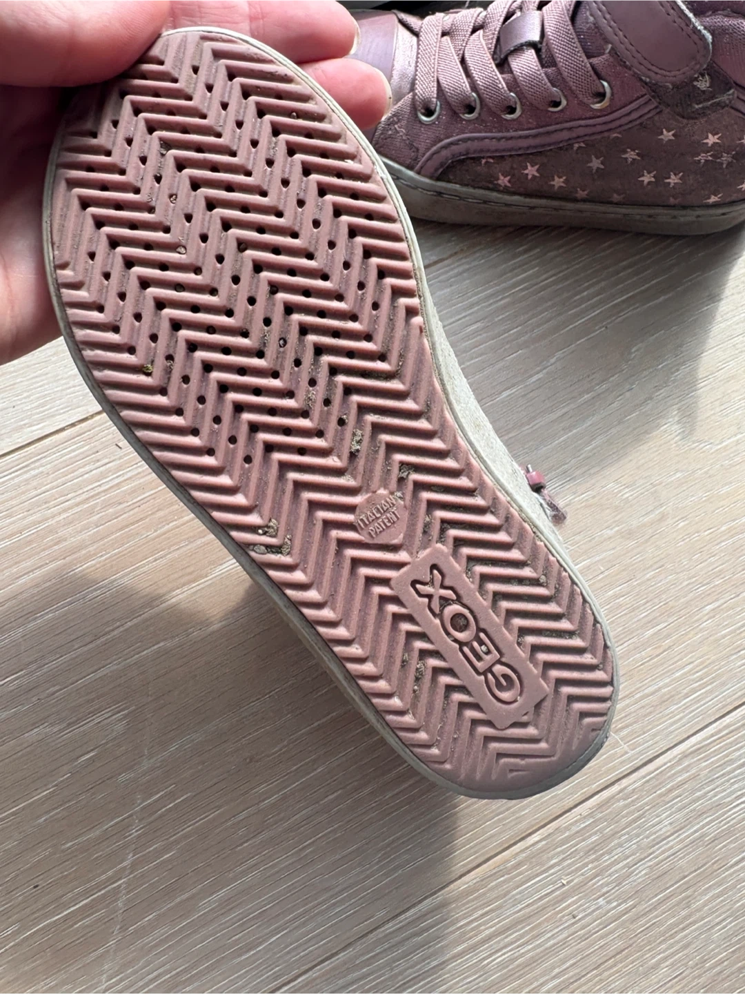Gently used Geox Respira kids' sneakers. They're a cute mauve colour with star details. Size US 10. Pick up in the Beaches at Queen and Victoria Park.