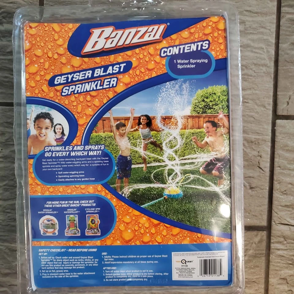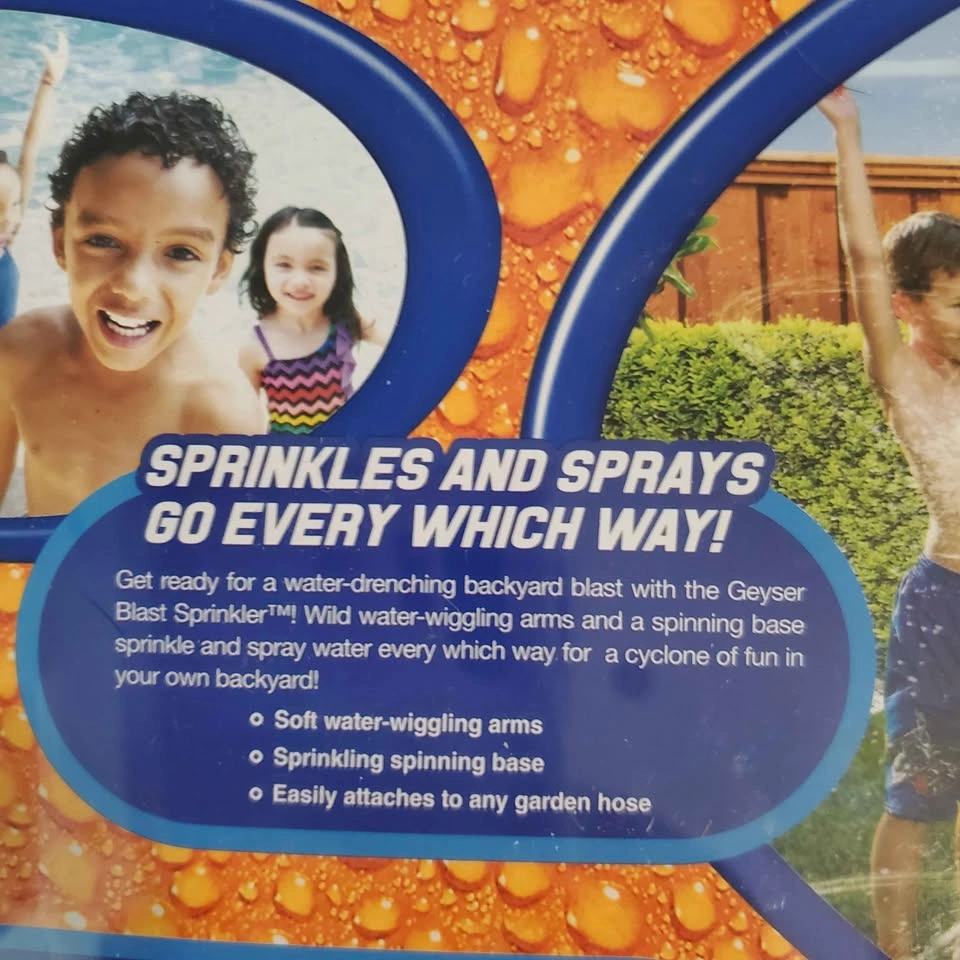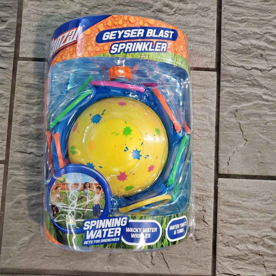 Brand New Geyser Blast Sprinkler Water Fun! Spinning Water Gets you soaked Perfect for a hot sunny day with the kids! Comes from a pet and smoke free home Pickup in North Burnaby
