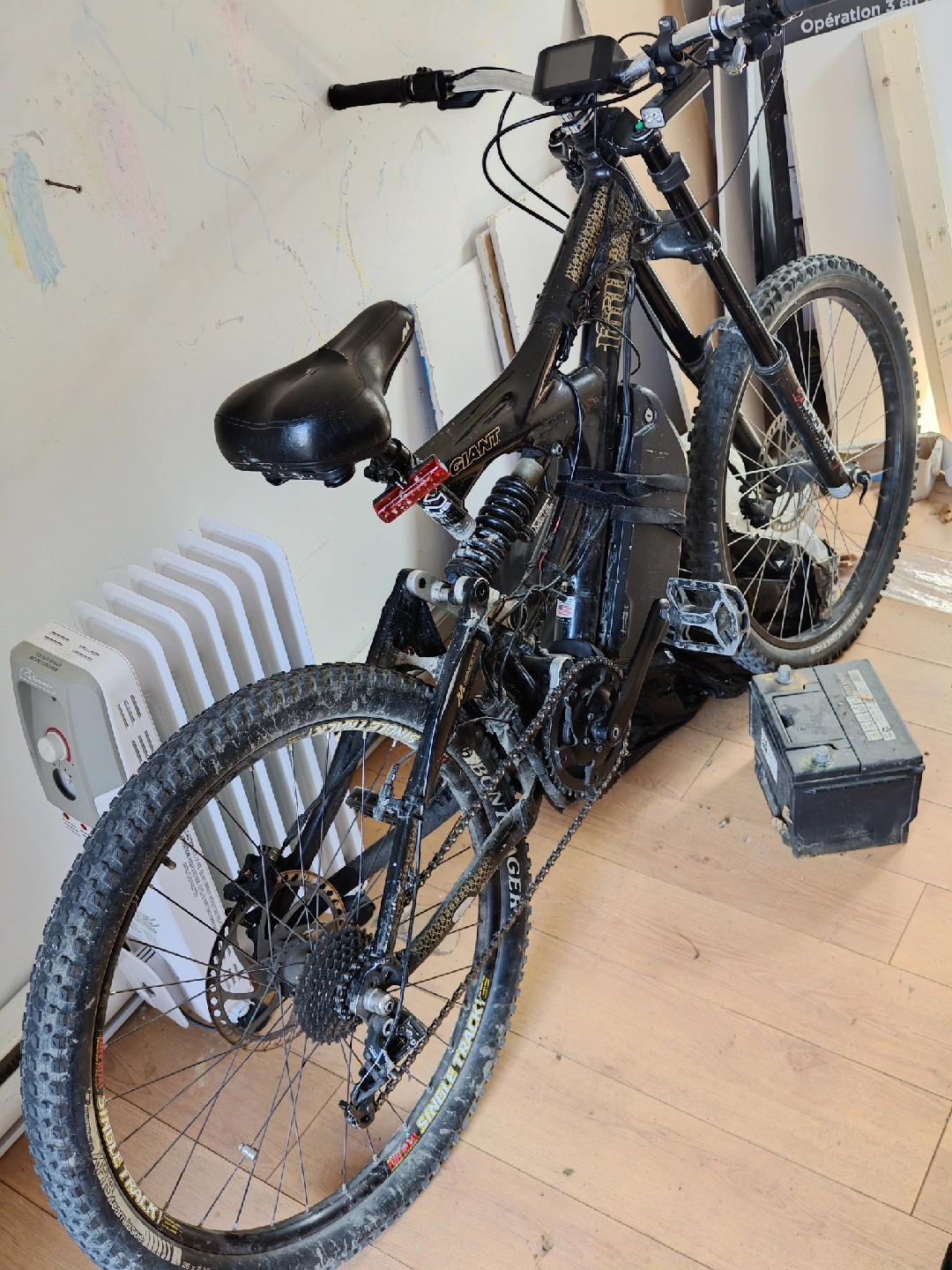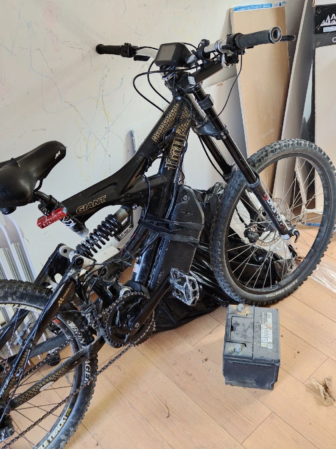 Selling a used Giant downhil electric l mountain bike 1000w. It features an Accolmile display and a RockShox fork.