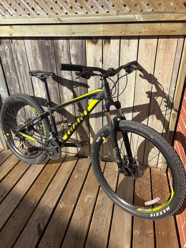Giant Talon 3 mountain bike in great condition. Stored indoors. - Size Small - 2017 - Great condition, my wife rode it a couple times a year. - Front suspension, disc breaks, ready to ride. Specs: Frame: Aluminum Suspension: Hardtail, 100mm Fork: Suntour XCT Wheels: 27.5″ Aluminum Drivetrain: 3 × 8 Groupset: Acera, Altus Brakes: Tektro Hydraulic Disc Pickup is in Nobleton.