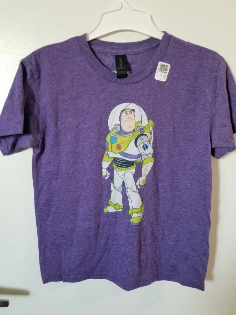 Selling a Gildan Disney Pixar T-shirt featuring Buzz Lightyear! This purple tee is in a size medium. It's a softstyle shirt and would be perfect for any Disney fan. New without tag