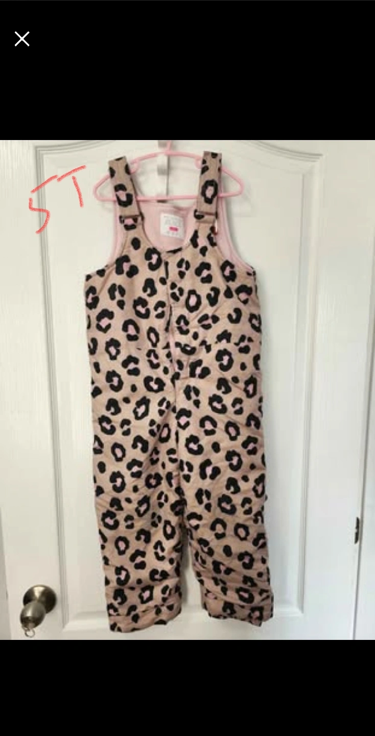 Selling a cute leopard print snowsuit for a girl in size 5T! It comes with both the jacket and the snow pants, perfect for keeping your little one warm and stylish this winter